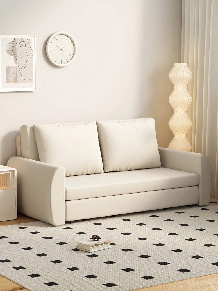 雲のような布地のソファベッド、折りたたみ式で一体型、リビングや小さな部屋にぴったり!2025年新作、クリームカラーの多機能ソファで快適な空間を実現。