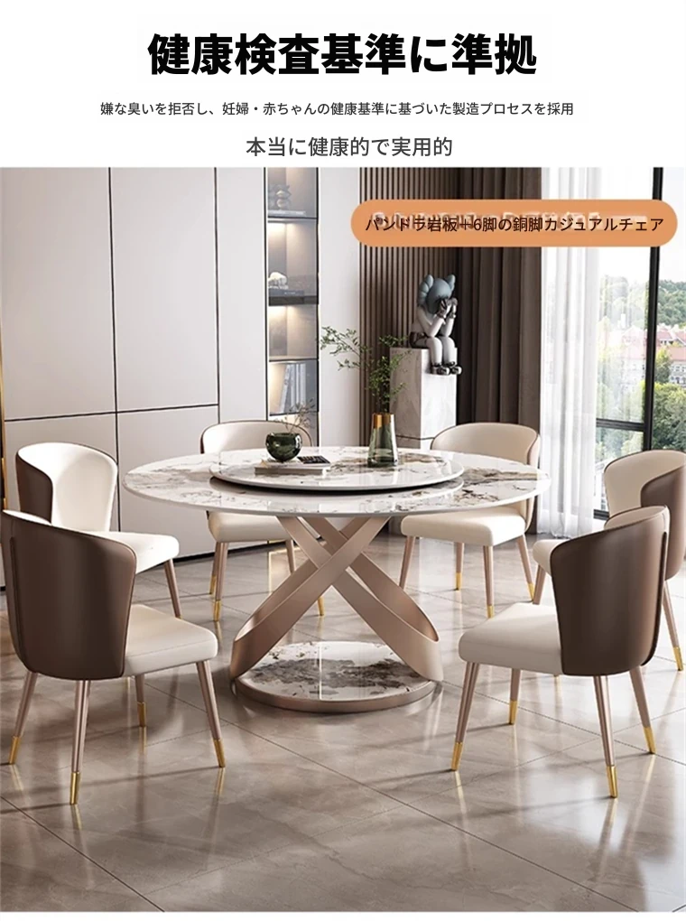允馨シンプルな円形石板ダイニングテーブル&チェアセット - イタリアンスタイルの回転式モダンラグジュアリー、大人数向けの家庭用ラウンドテーブル。洗練されたデザインで、食卓を一層華やかに演出します!