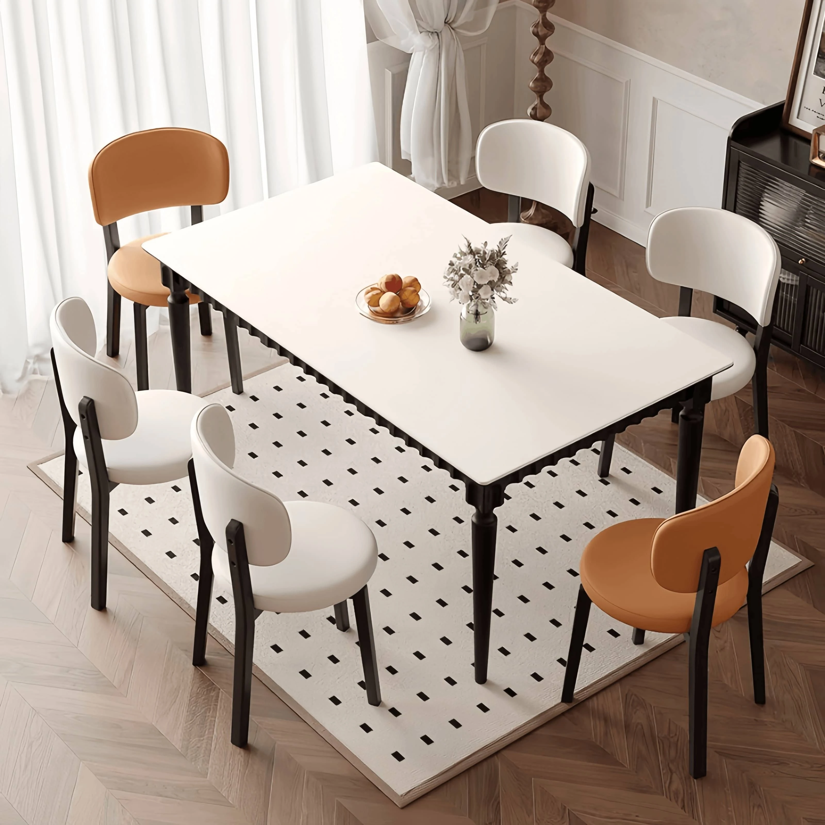 北域宮廷スタイルの高級感あふれる岩板ダイニングテーブル - 小型住宅に最適なモダンシンプルな長方形デザイン、洗練された椅子付きで、あなたの食卓に贅沢な雰囲気を演出します。