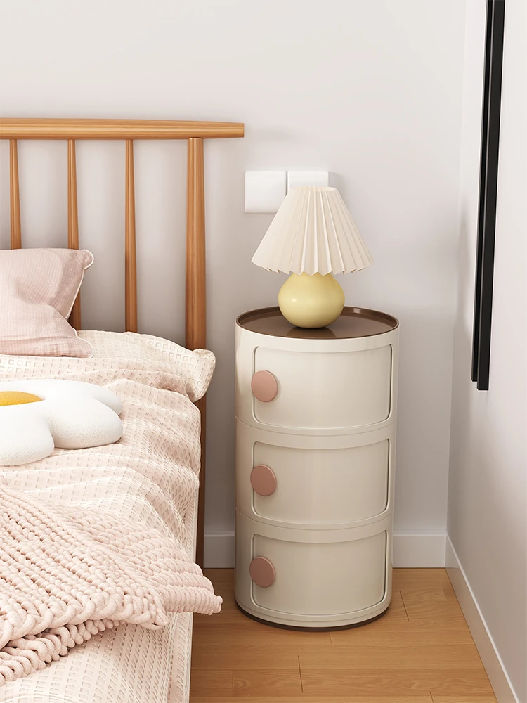 シンプルでモダンなデザインのベッドサイドテーブル!お手入れ簡単なプラスチック製、小型ミニ収納ボックス。クリエイティブな円形キャビネットで、子供部屋にもぴったりなスリムな収納引き出しです。