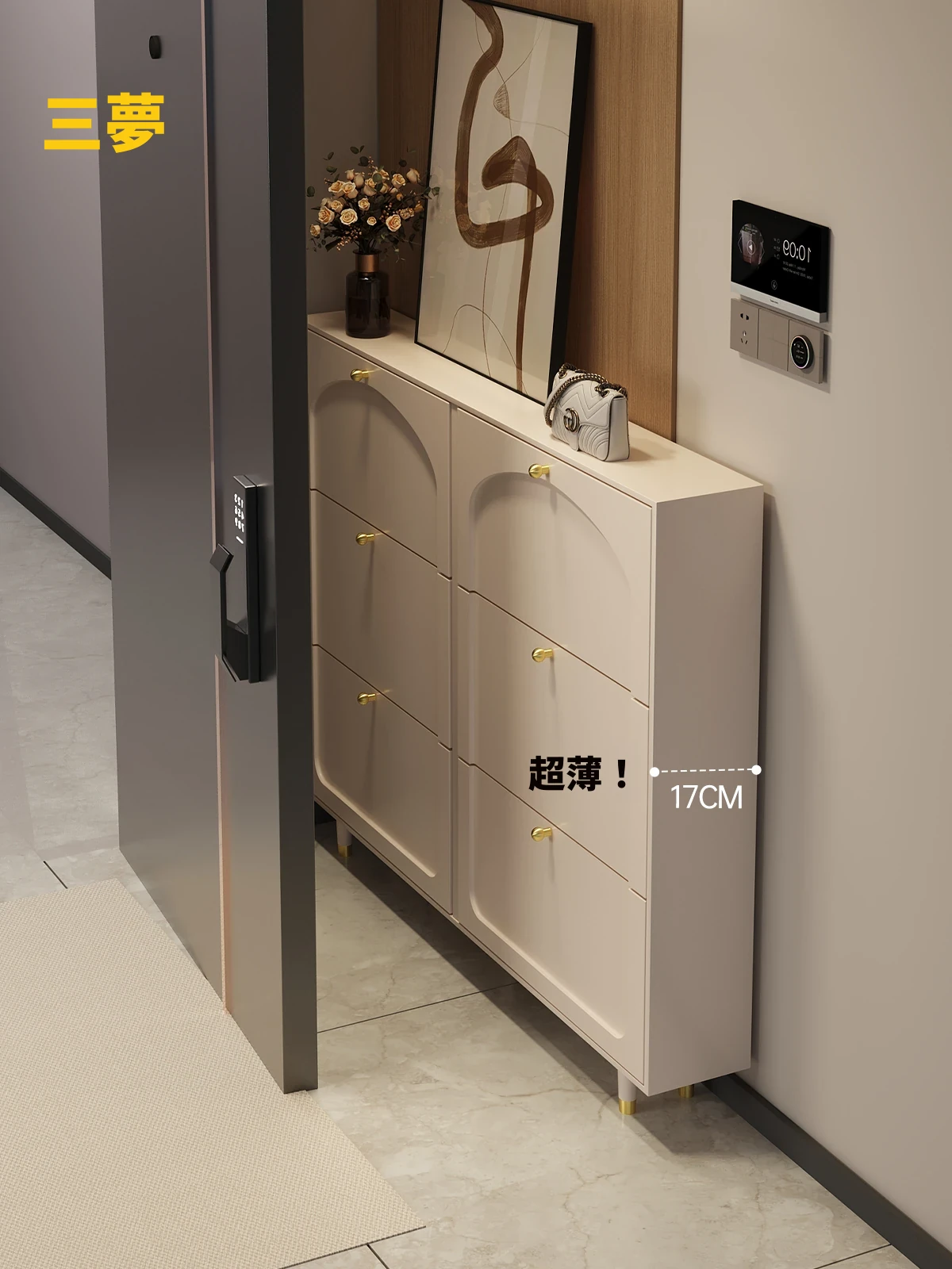 2024年新款!三梦クリーム風スリムシューズキャビネット - 家庭用の狭い玄関にピッタリ!バルコニーに最適な超薄型折りたたみシューズラックで、スッキリ収納!爆発的人気商品!