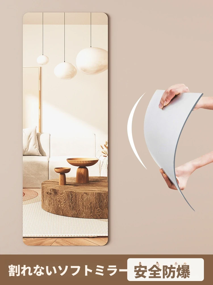 アクリル粘着式全身鏡 - 壁に貼るだけで簡単!自宅での試着やメイクに最適な高画質ミラー。寝室やリビングにぴったりのスタイリッシュなアイテム!