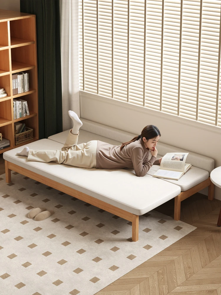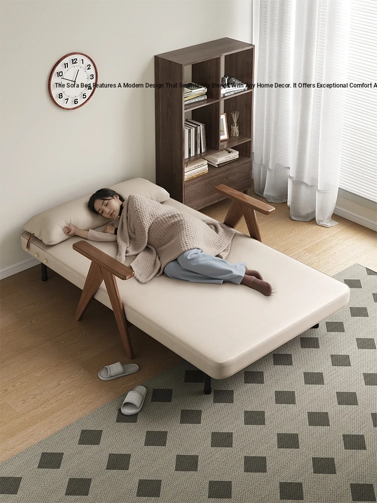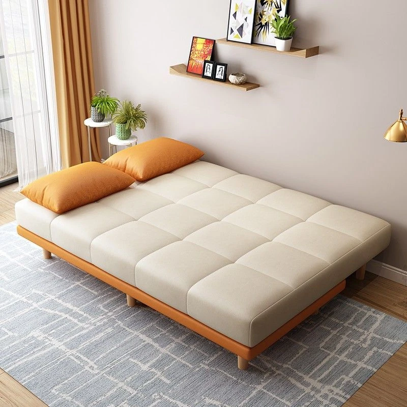 Multifunctional Solid Wood Sofa Bed - Foldable and Space-Saving for Small Apartments, Versatile Living Room Sleeper Sofa with No Armrests and Pull-Out Design.