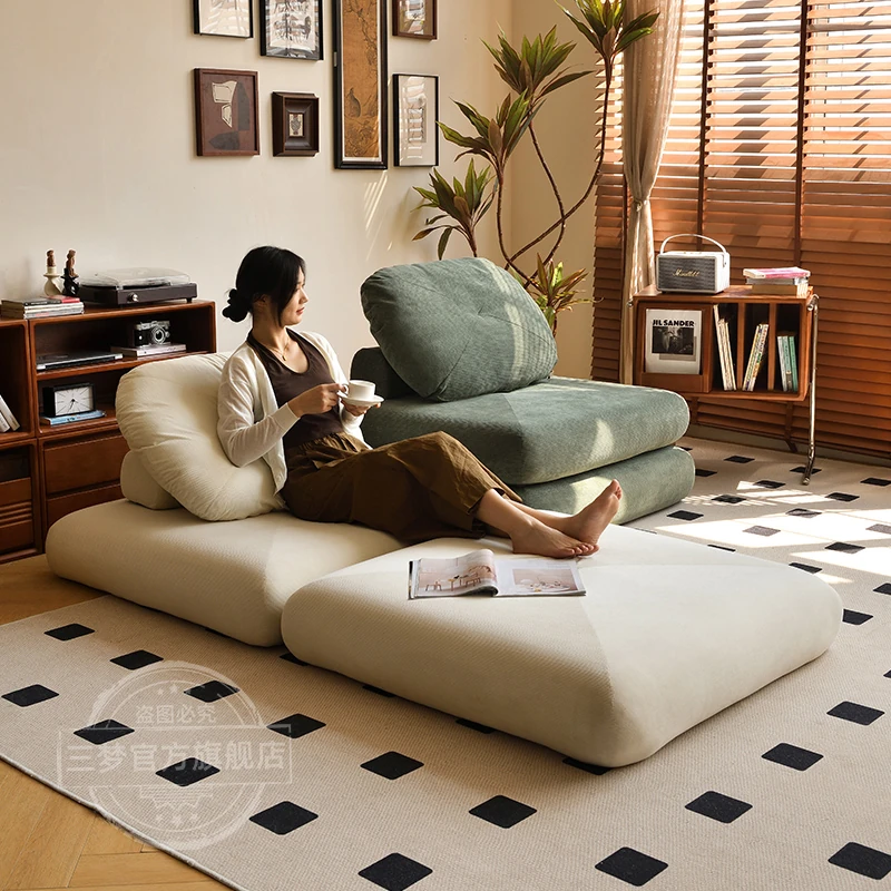 2025 New Multifunctional Cream Wind Sofa Bed - Foldable Design for Small Spaces, Perfect for Living Rooms and Balconies, Ideal for Single Use