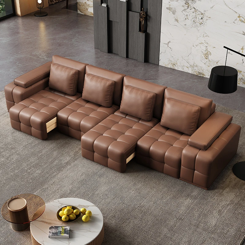 Merry Bear Genuine Leather Electric Modular Sofa with Retractable Function - Top Grain Leather Sofa Bed for Ultimate Comfort and Style