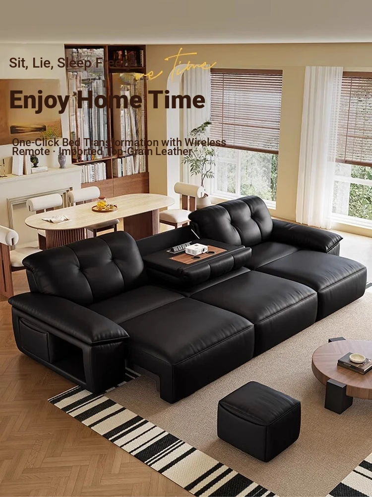 Goufei Italian Leather Electric Sofa Bed - Modern Minimalist Design with Reclining Back and Convertible Coffee Table for Versatile Living Room Use