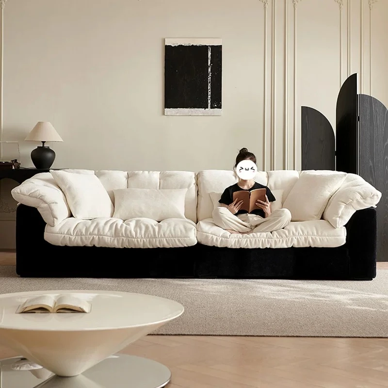 Zhenpi French Lazy Style Black and White Color Block Cloud Sofa - Perfect Chenille Fabric Couch for Small Living Rooms