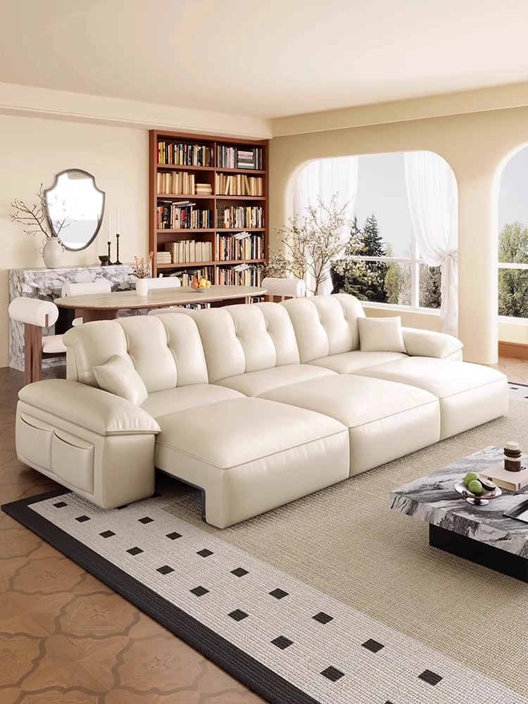 Goufei Cream Leather Electric Sofa - Modern Minimalist Convertible Sofa Bed with Dual Functionality for Your Living Room - Stylish, Comfortable, and Space-Saving Solution!