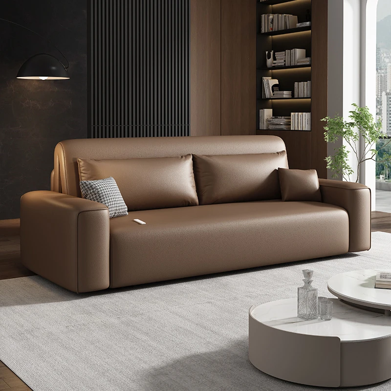 Kailai Star Tofu Block Italian Genuine Leather Sofa Bed - Space-Saving, Foldable, Dual-Function Sofa for Small Living Rooms, Perfect for Home Use