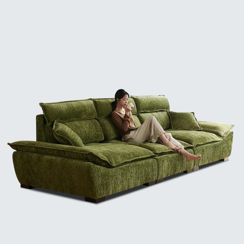 Modern Minimalist Cloud-Style Sofa with Adjustable Backrest - Elegant Chenille Fabric, Duck Down Cushion, Perfect for Your Living Room!