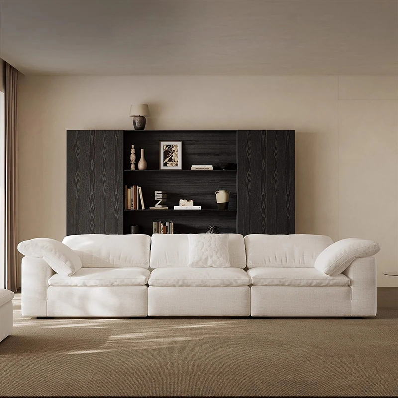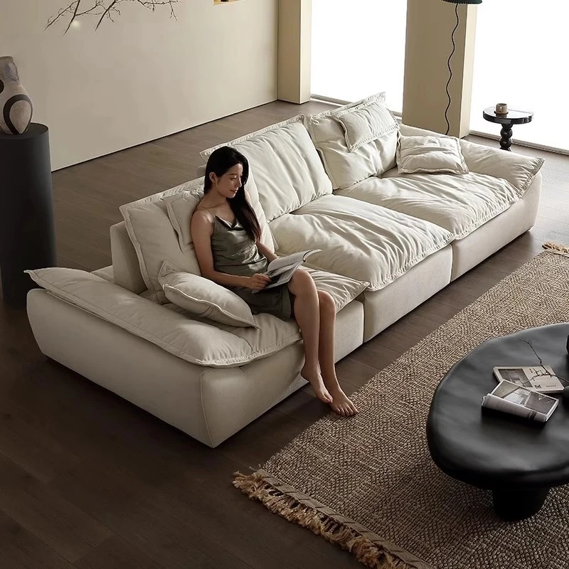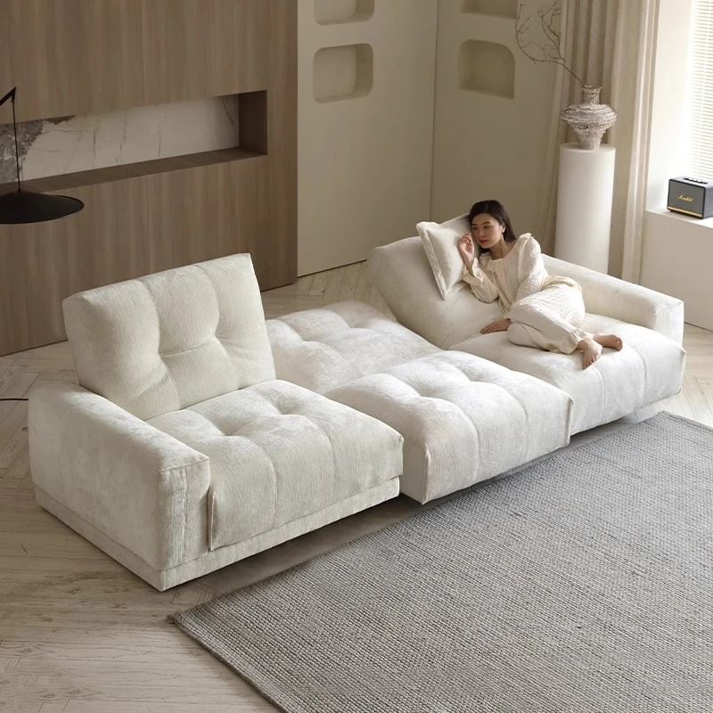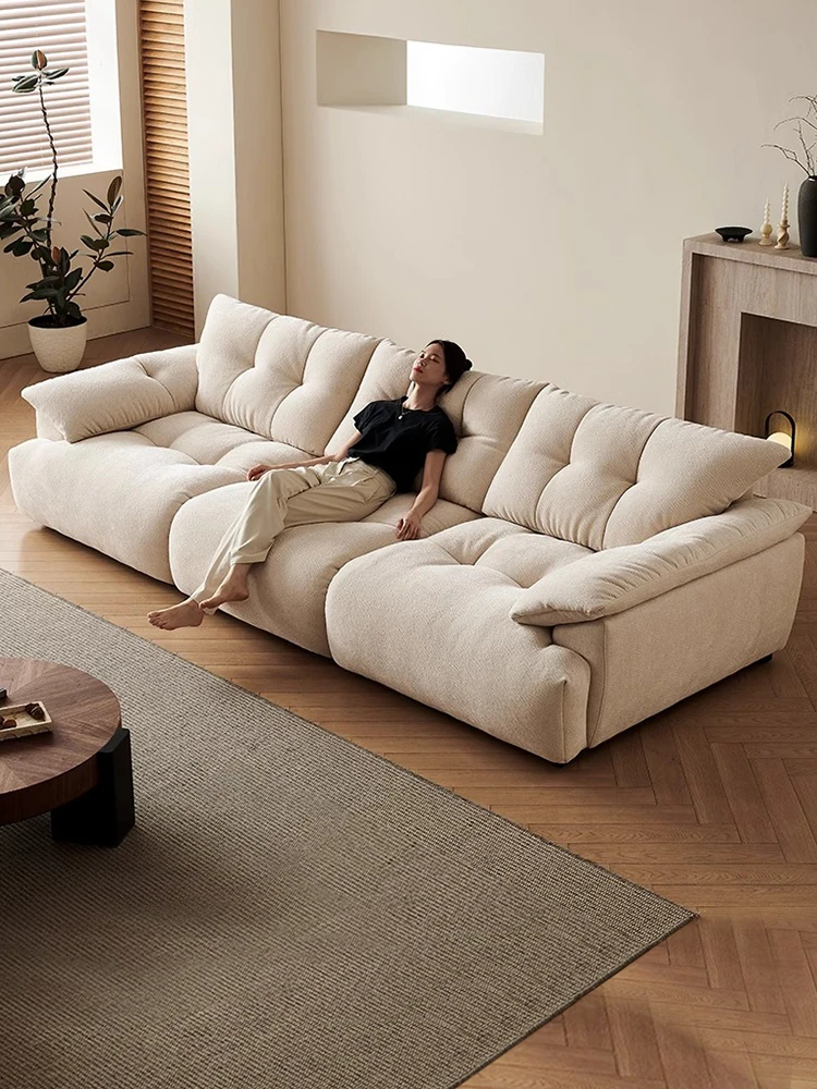 Zen Style Cloud Sofa - High-End Designer Cotton-Linen Sofa for Small Living Rooms, Embracing Wabi-Sabi Aesthetics with Creamy Tones and Straight-Line Fabric Design. Perfect for Modern Minimalist Spaces!
