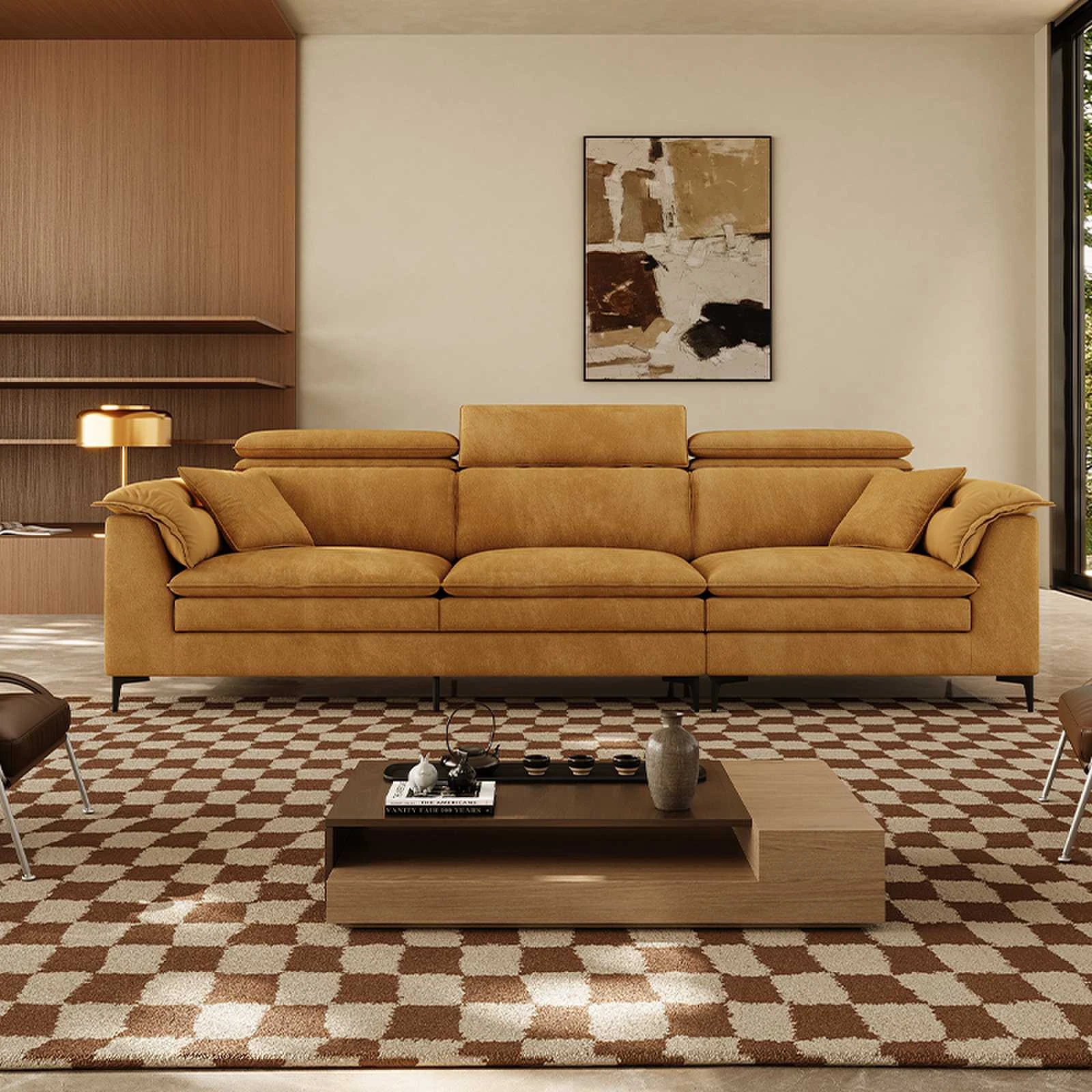 Yunxin Italian Minimalist Cestone Woven Leather Amisha Sofa - Stylish and Spacious Living Room Furniture for Large Open Floor Plans