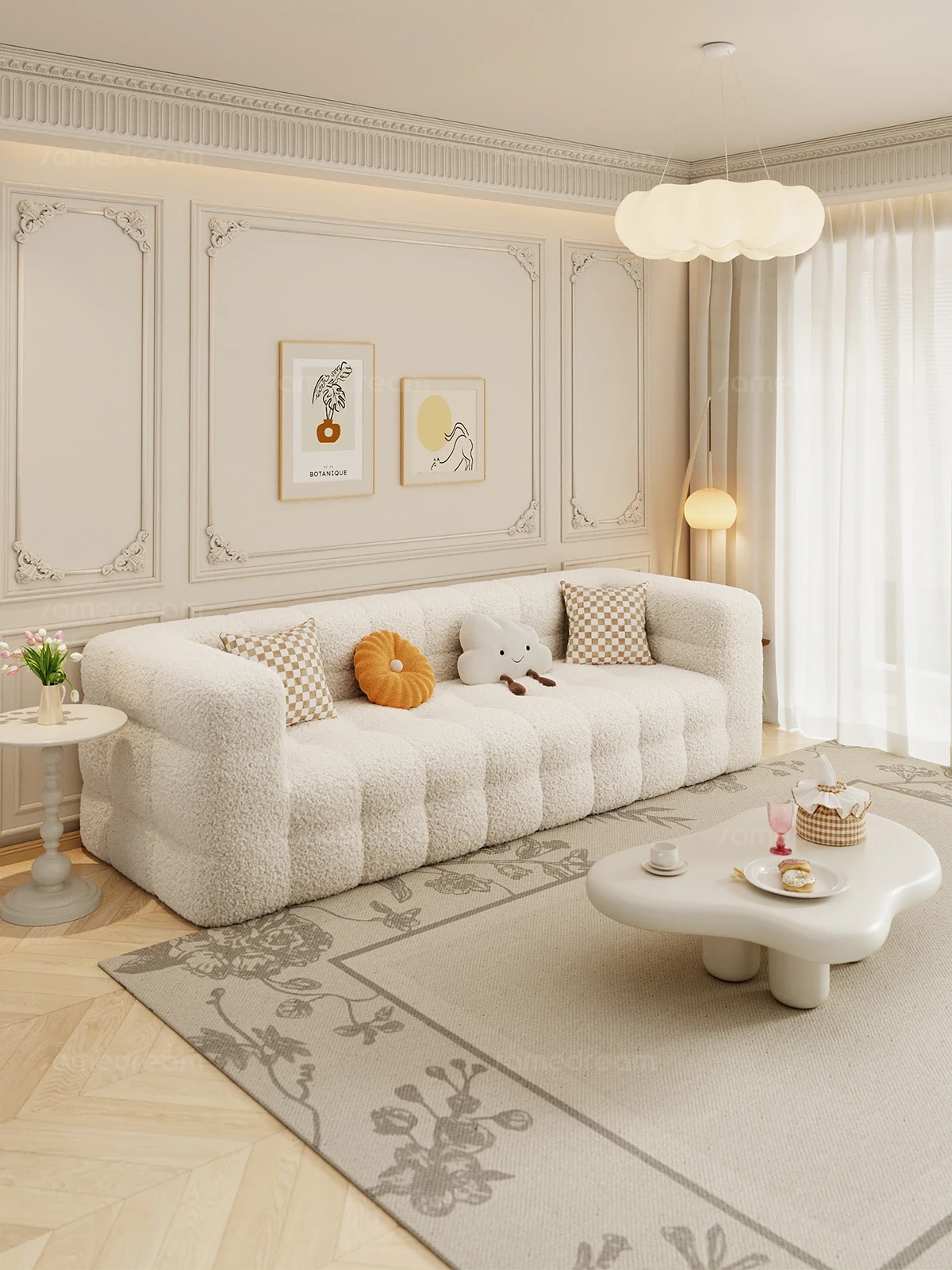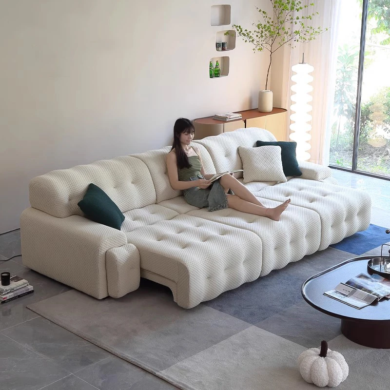 2025 New Soft Cream Fabric Sofa - Dreamy Marshmallow Design for Small Living Rooms, French Lambswool Style, Perfect for Cozy Spaces
