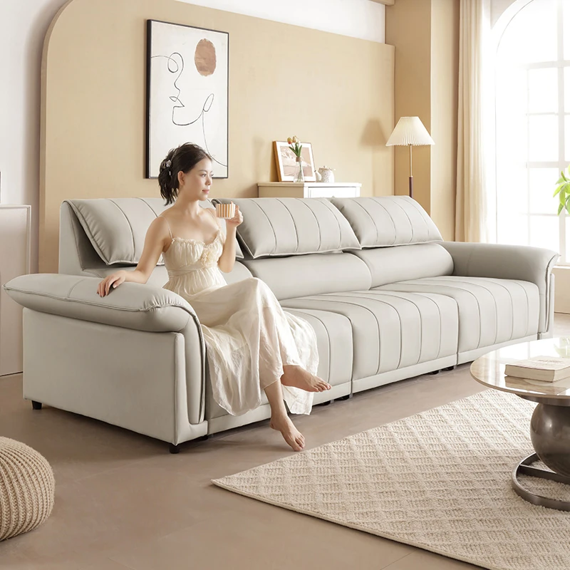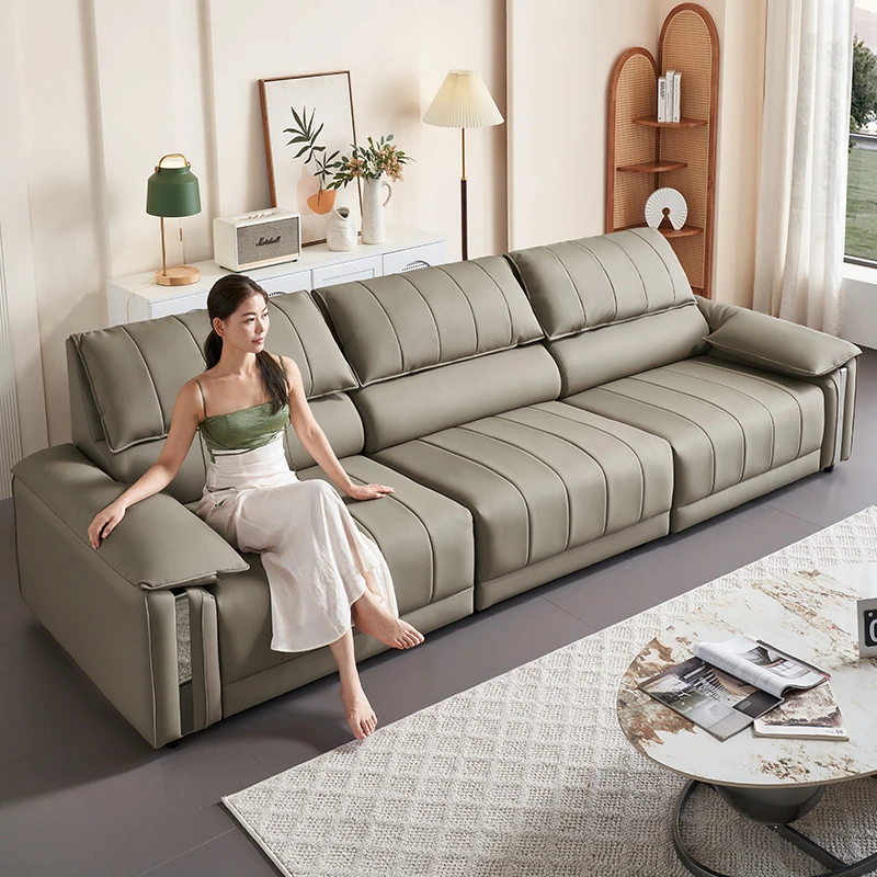 Luxurious Italian Minimalist Electric Leather Sofa Bed - Perfect for Small Living Rooms and Home Use, Featuring Piano Key Design and Versatile Expandable Functionality.