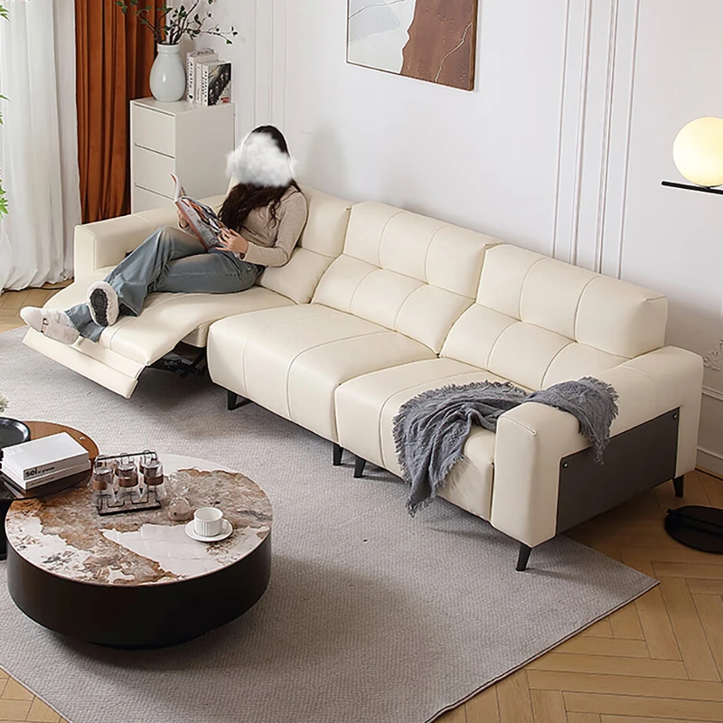 Modern Minimalist Leather Sofa with Electric Function - Space-Saving Reclining Sofa Set for Small Apartments, Wall-Mounted Design by Liangli Ju
