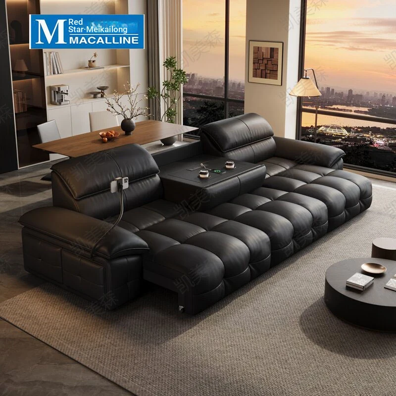 Luxurious Italian Minimalist Electric Sofa Bed with Extendable Features – Crafted from Premium Top-Grain Leather, Perfect for Style and Comfort in Any Modern Living Space!