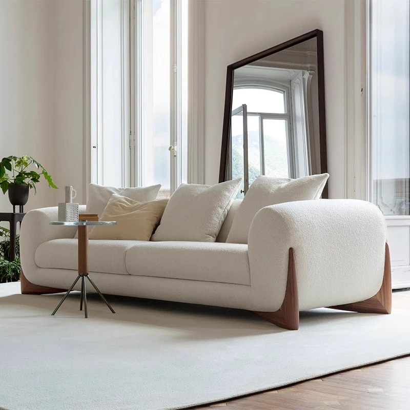 Yunxin Scandinavian Style Fabric Sofa for Small Living Rooms - Elegant Wabi-Sabi Creamy Lambswool Couch for a Cozy Space