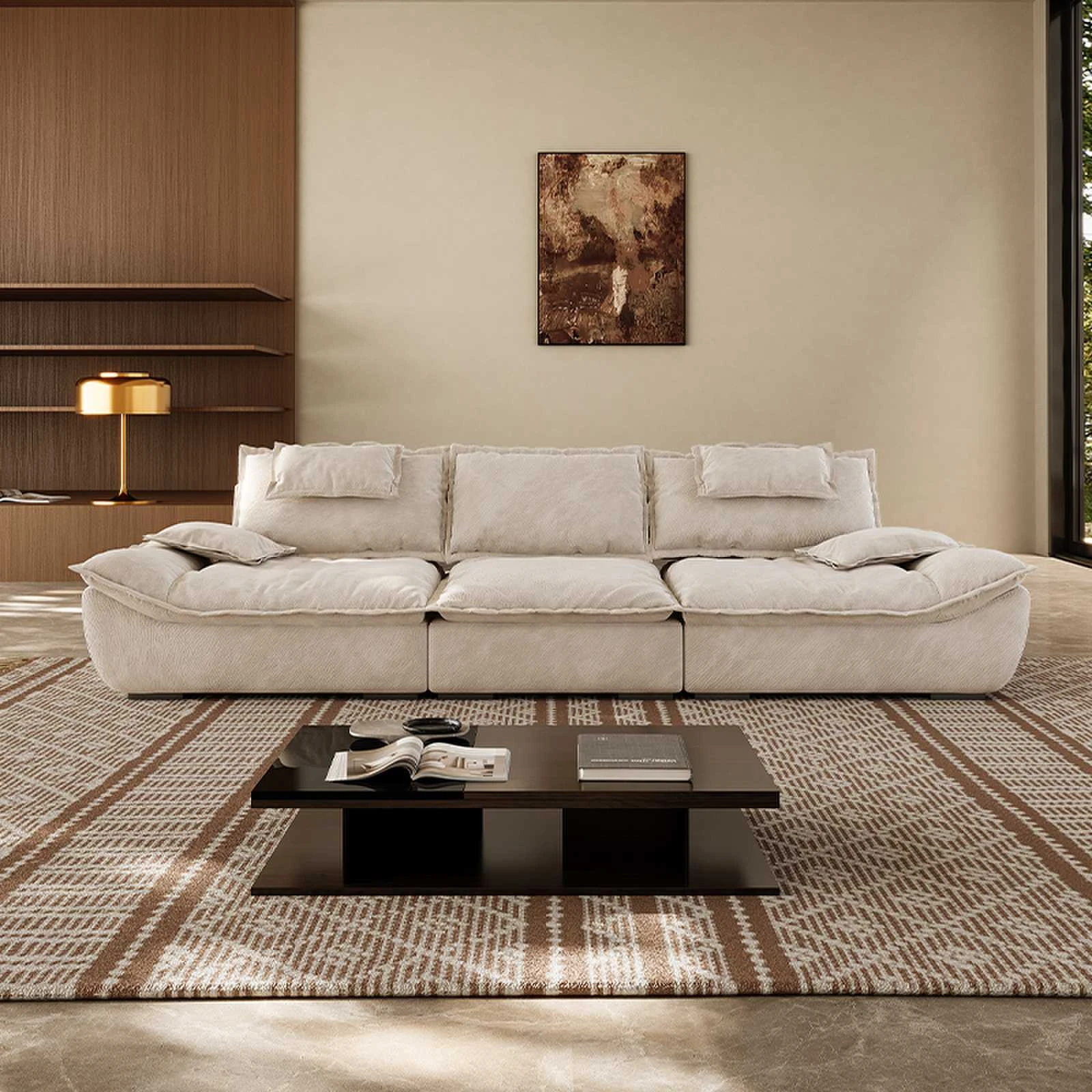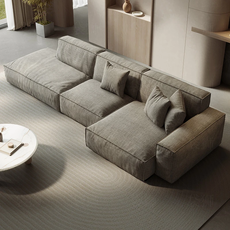 Nordic Minimalist Linen Sofa - Japanese Wabi-Sabi Style, Cozy Square Shape for Living Room, Corner Couch with Cotton and Linen Fabric, Perfect for Modern Interiors