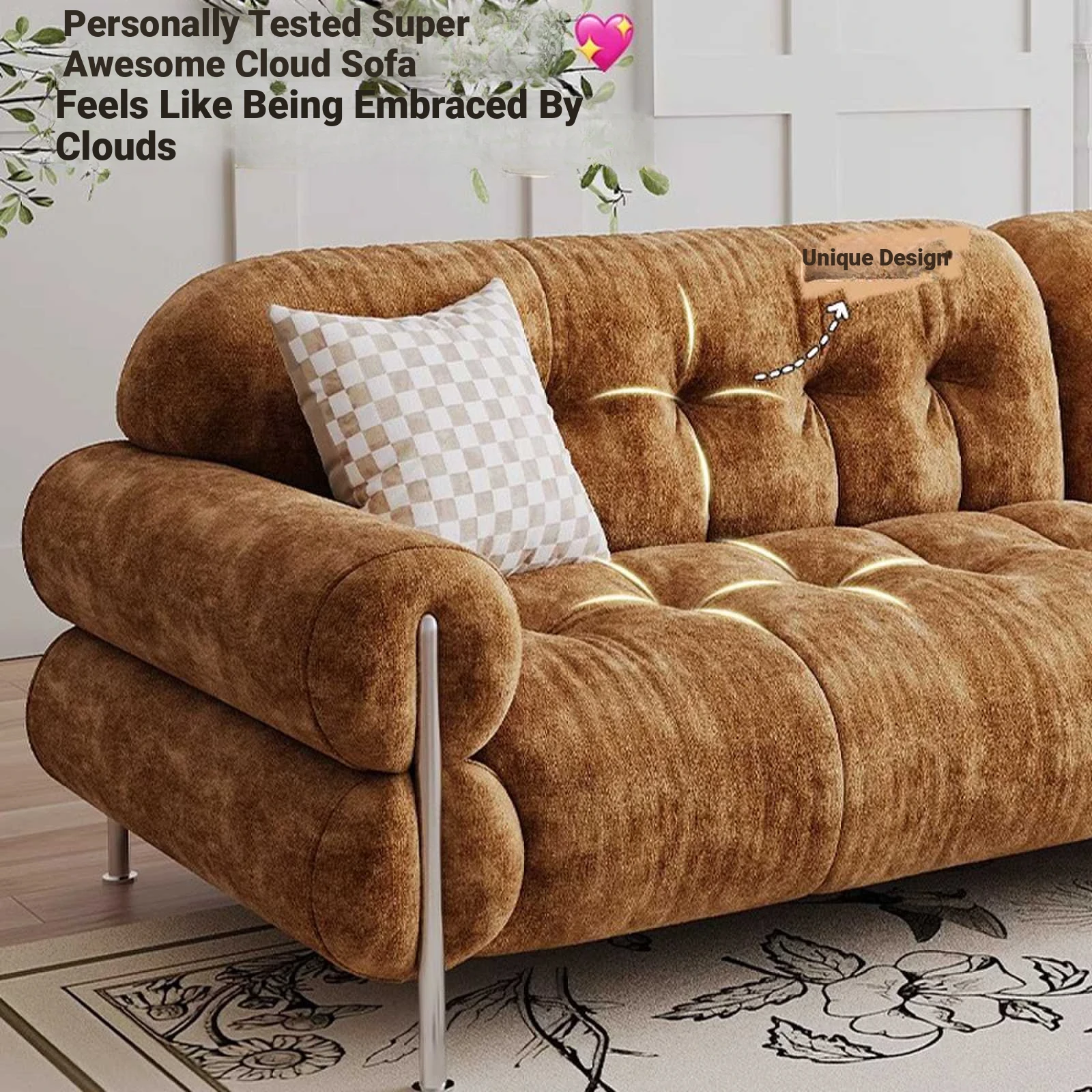 KaiMiao Deep Seat Wide Vintage Style Sofa 2024 - Removable Backrest, Cloud Soft Chenille Fabric, Perfect for Cozy Living Spaces!