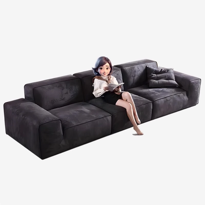 Yunxin Summer Collection: Stylish Italian Minimalist Large Black Cow Sofa - Designer's Smooth Fabric Couch for Living Room with Elegant Block Design