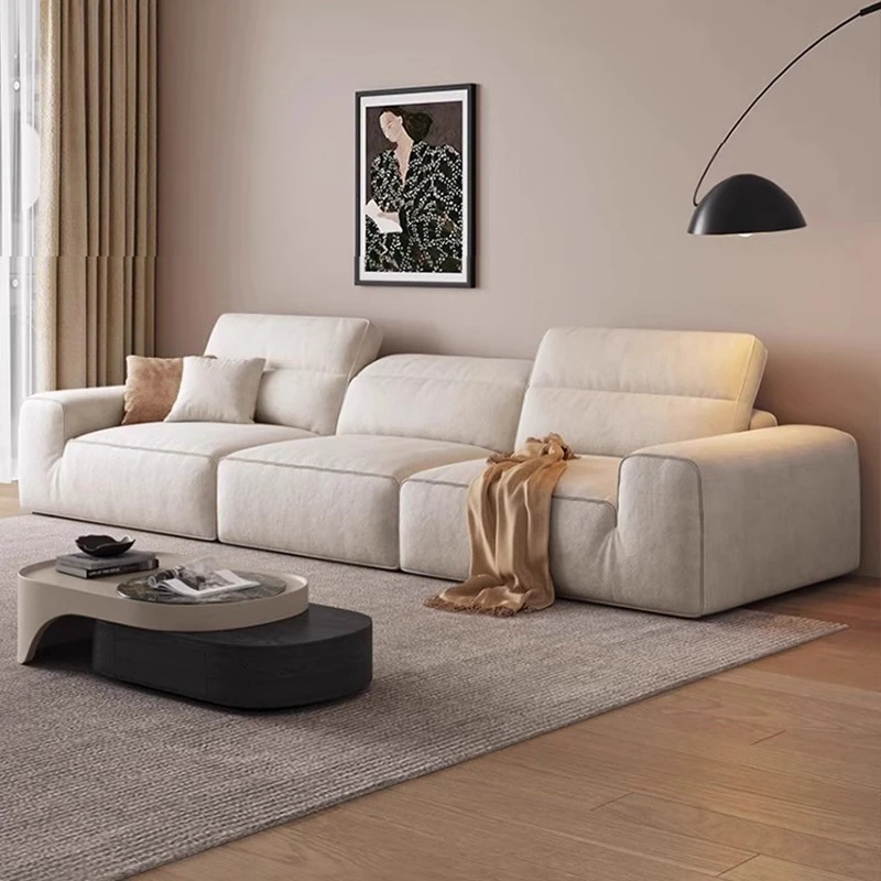 Yuqin 2025 New Creamy Cat Scratch Leather Sofa - Modern Minimalist Design for Small Living Rooms, Deep Seating, and Straight-Line Comfort, Perfect for Cozy Spaces