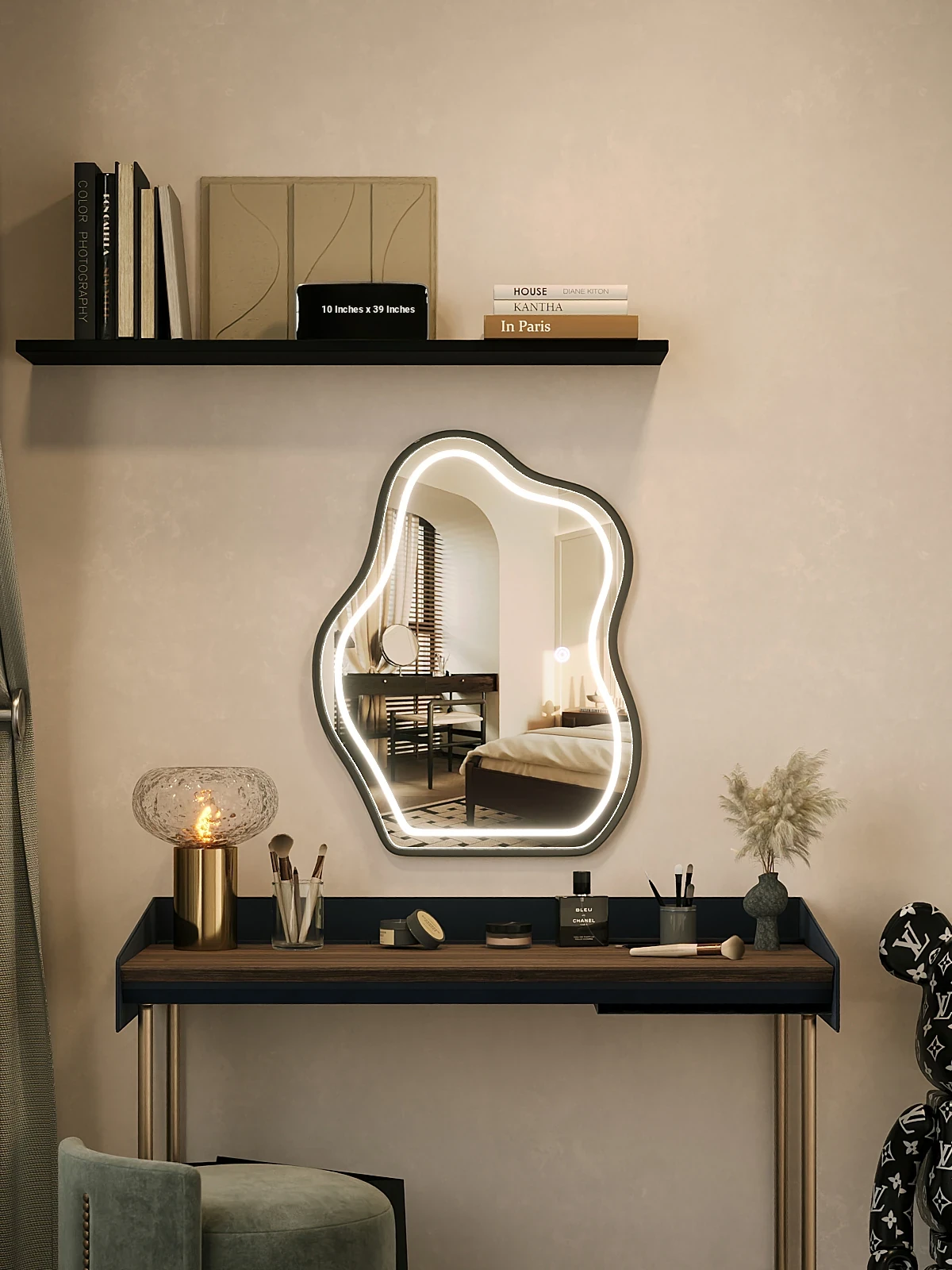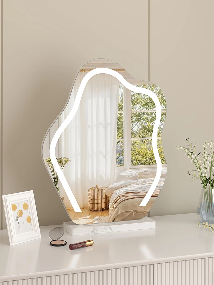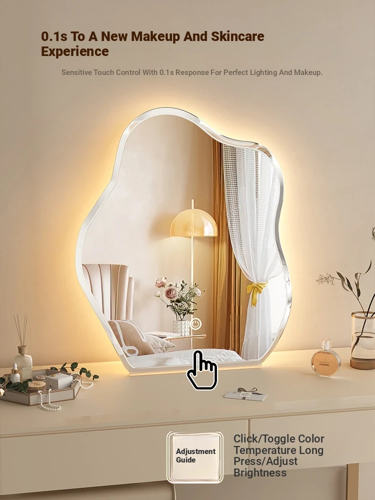 Creamy Cloud Makeup Mirror with LED Light - Stylish Desktop Vanity Mirror for Master Bedroom, Unique Shape Smart Mirror for Your Beauty Routine