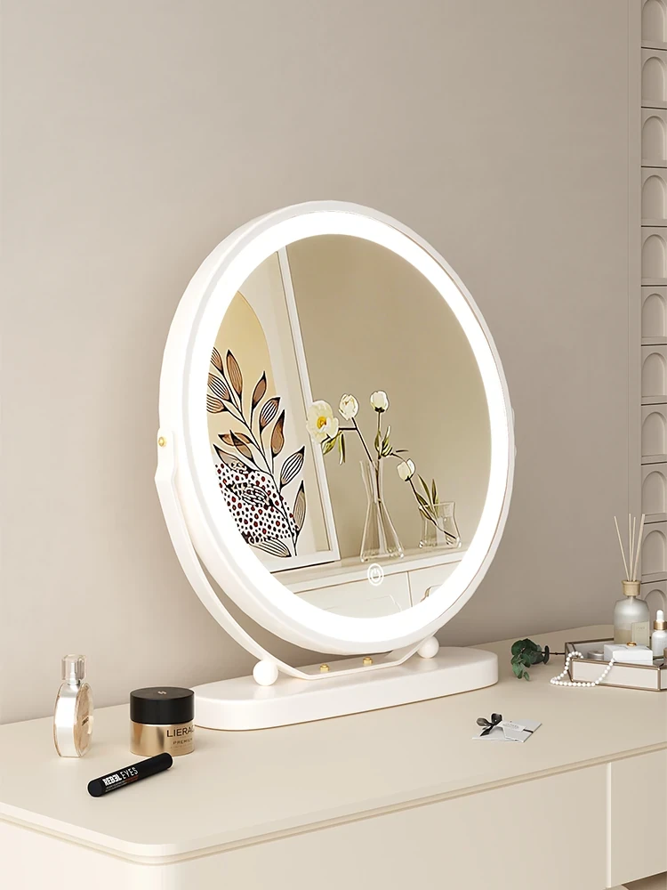 Illuminated Rotating Makeup Mirror - Stylish Desktop Vanity Mirror for Home Use, Perfect for Bedroom, Featuring Smart Technology and Elegant Design for Effortless Beauty Routine.