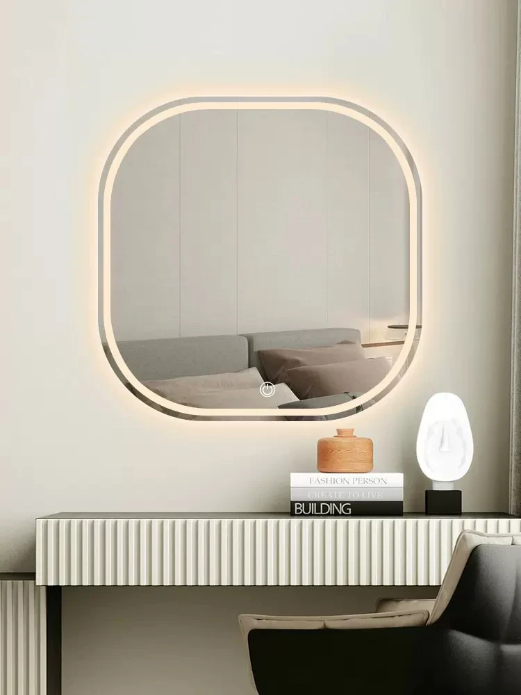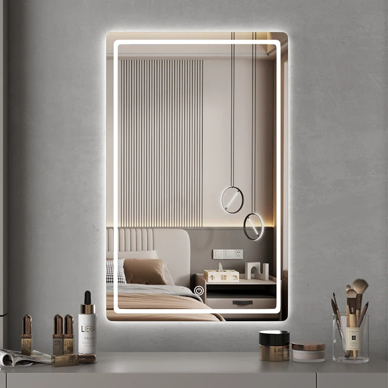 Smart LED Makeup Mirror for Bedroom - Wall-Mounted Square with Rounded Corners, Perfect for Glamorous Touch-Ups and Daily Beauty Routines