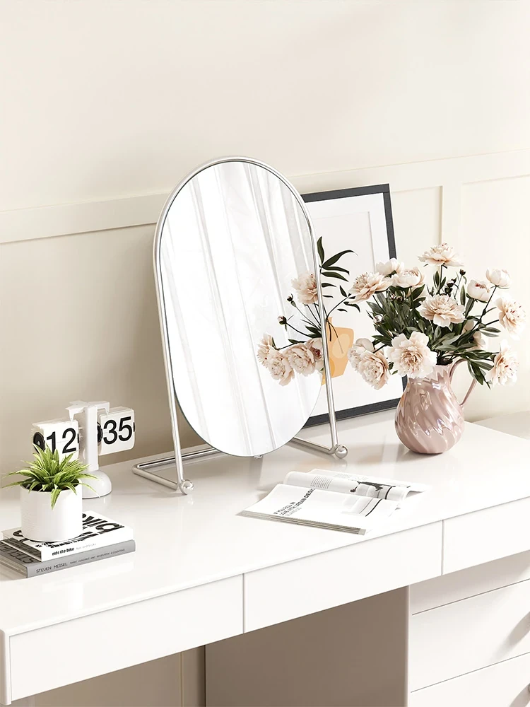 Vintage Makeup Mirror - Stylish Desktop Vanity Mirror for Students, Dorms, and Home Use - Elegant Iron Frame Bedroom Decor Mirror