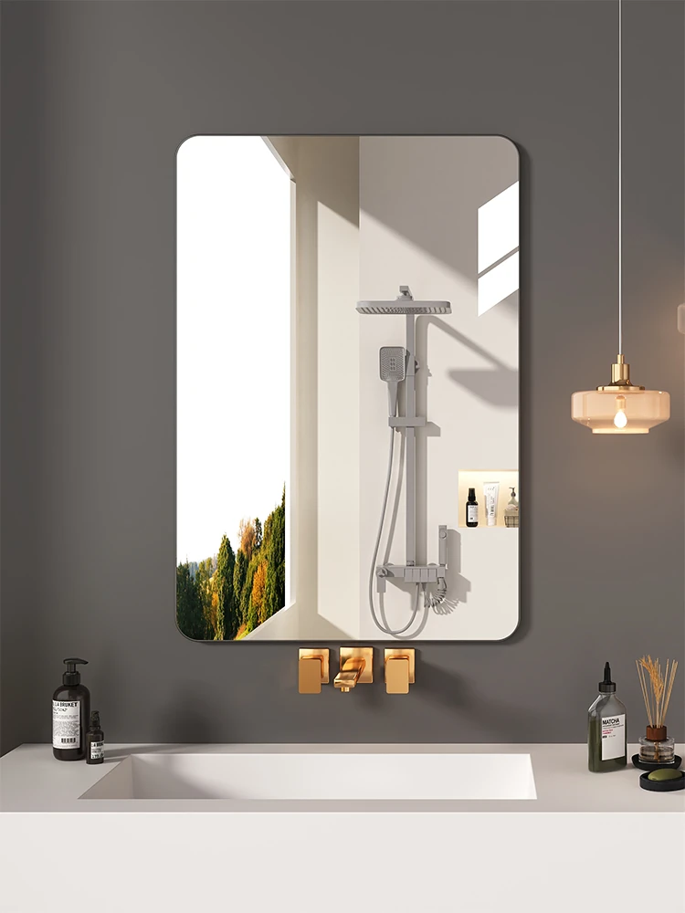 Wall-Mounted Bathroom Mirror with Self-Adhesive Feature – No Drilling Required! Perfect for Your Makeup and Grooming Needs, Ideal for Small Spaces and Stylish Decor.