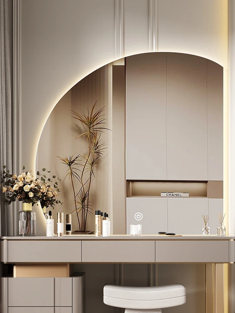 Smart Half-Round Wall-Mounted Makeup Mirror with LED Lights - Stylish and Functional Dressing Mirror for Home Use, Perfect for Your Master Bedroom Vanity
