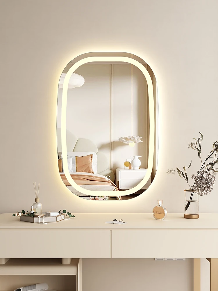 Oval Smart LED Wall-Mounted Makeup Mirror - Illuminated Decorative Mirror for Bedroom Vanity, Unique Shaped Design with Glamorous Lighting