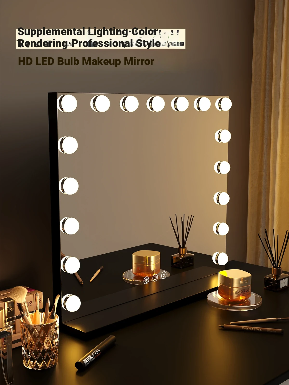Illuminated Makeup Mirror with LED Bulbs - Large Smart Desktop Vanity Mirror for Flawless Makeup Application