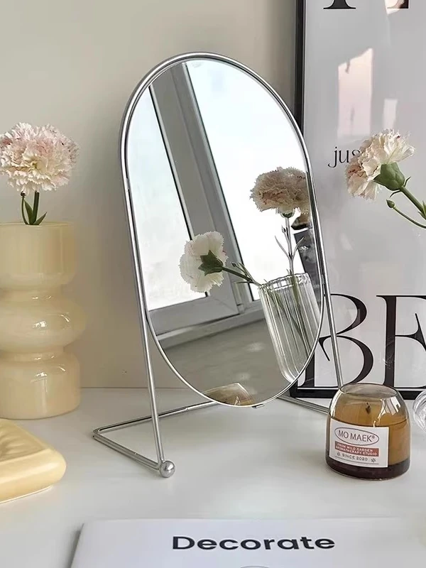 Elegant Portable Makeup Mirror - Vintage Iron Vanity Mirror for Bedroom and Dorm, Compact Beauty Mirror for Home Use, Perfect for Students and Fashion Lovers.