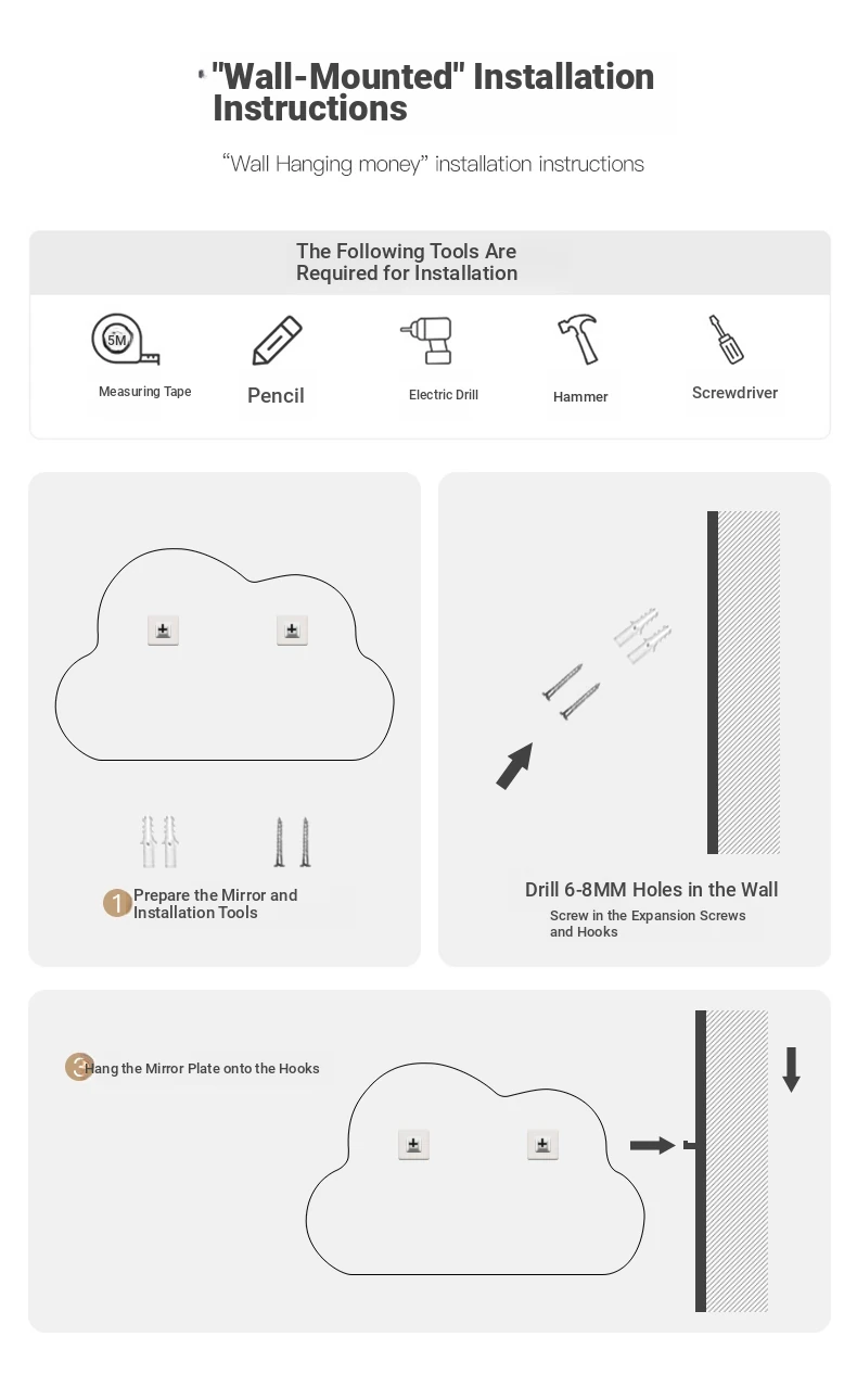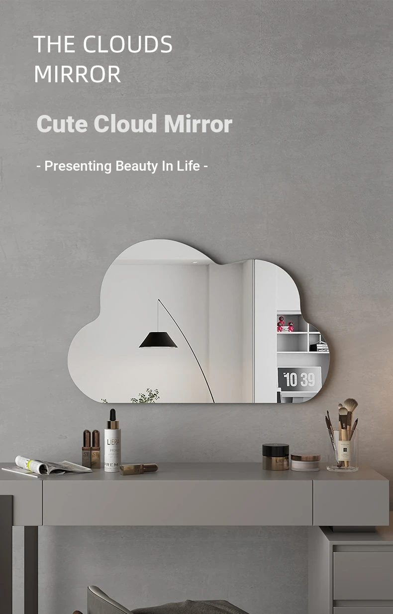 Cloud Shaped Makeup Mirror - Wall-Mounted & Desktop Vanity Mirror for Bedroom, Elegant Glass Design for Home Use, Perfect for Your Chic Makeup Station!