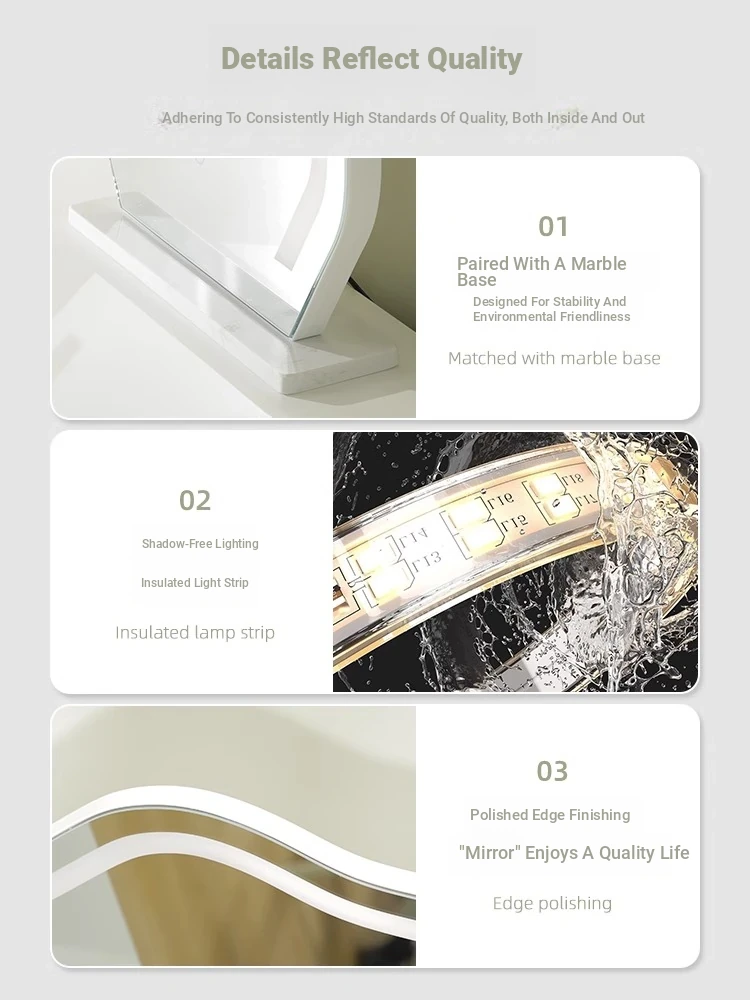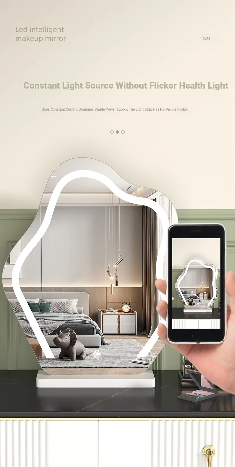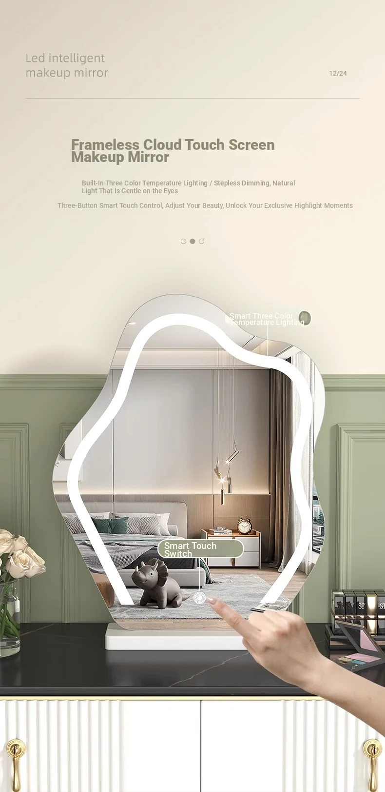 Medium Cloud Dressing Mirror Plug-in Smart Tri-color Black Marble Base