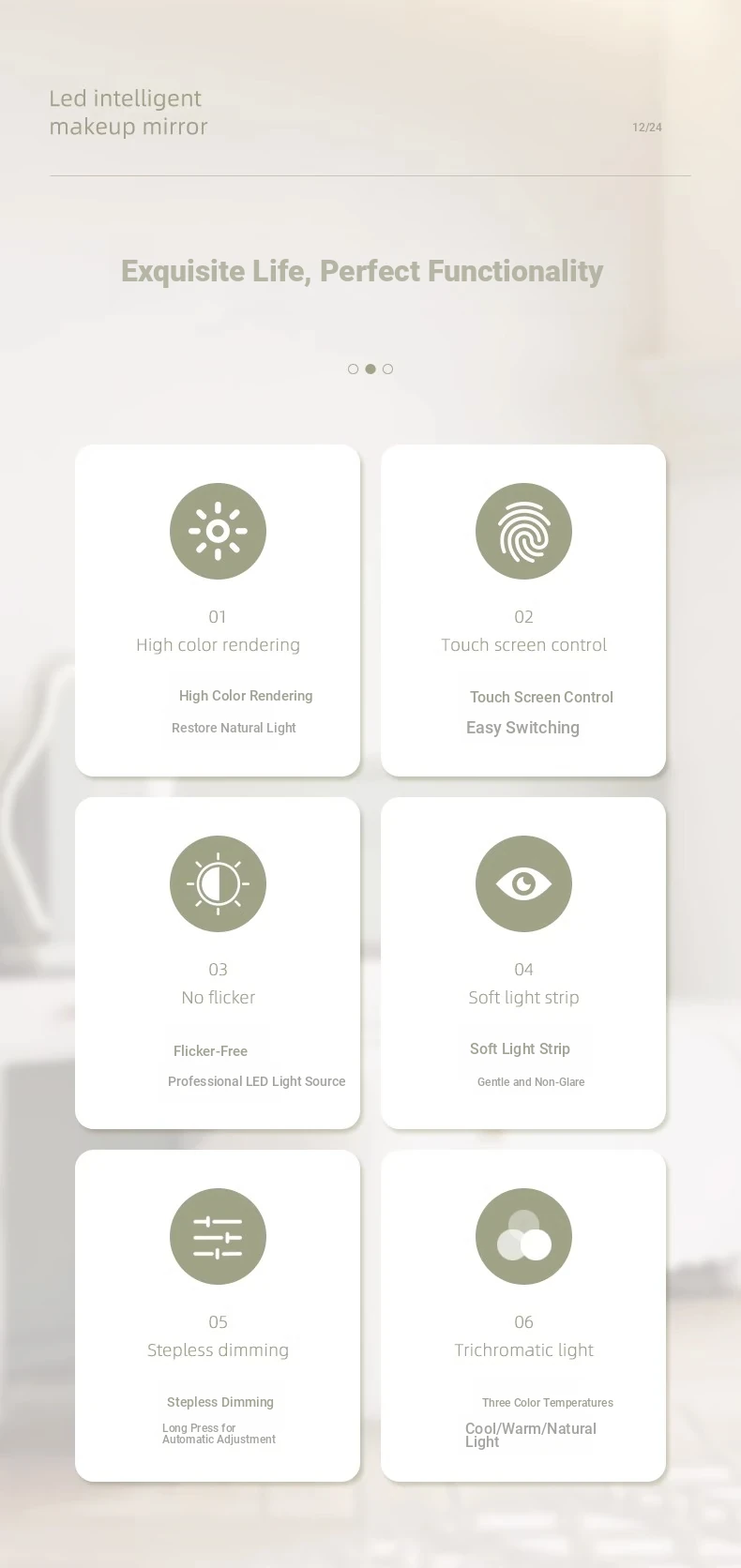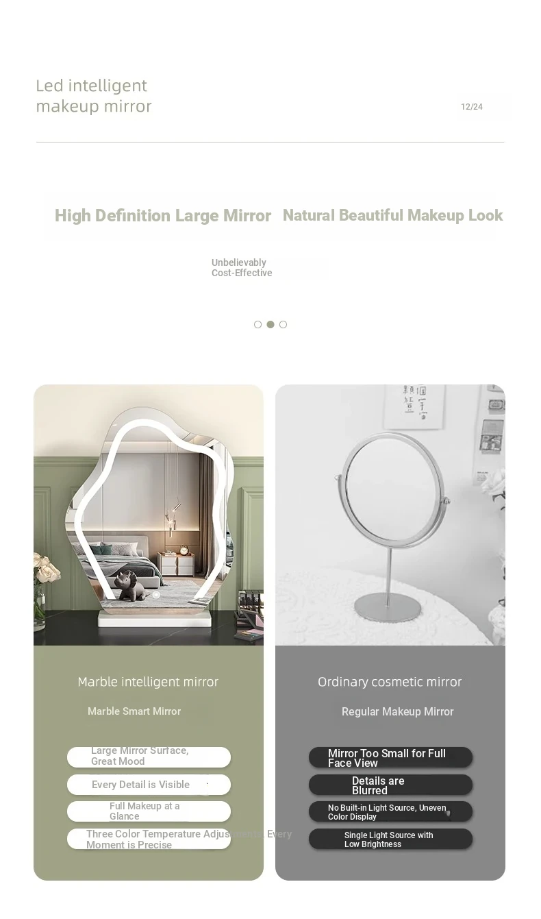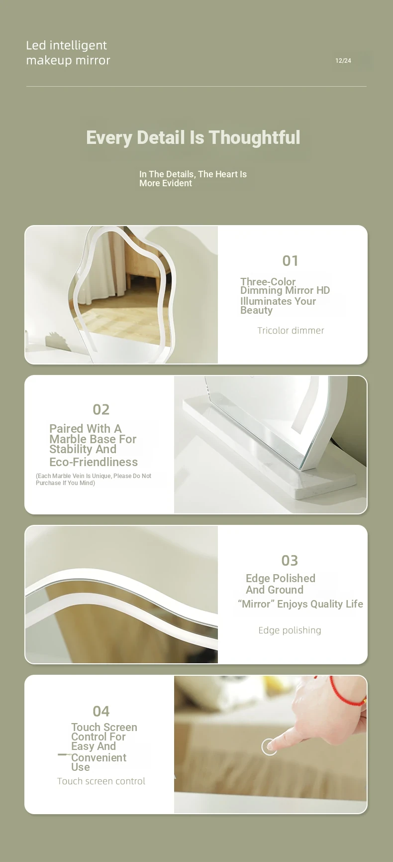 Medium Cloud Dressing Mirror Plug-in Smart Tri-color Black Marble Base