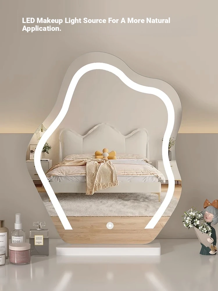 Cloud-Shaped LED Makeup Mirror with Smart Lighting - Stylish Vanity Desktop Mirror for Your Bedroom, Perfect for Flawless Beauty Routine