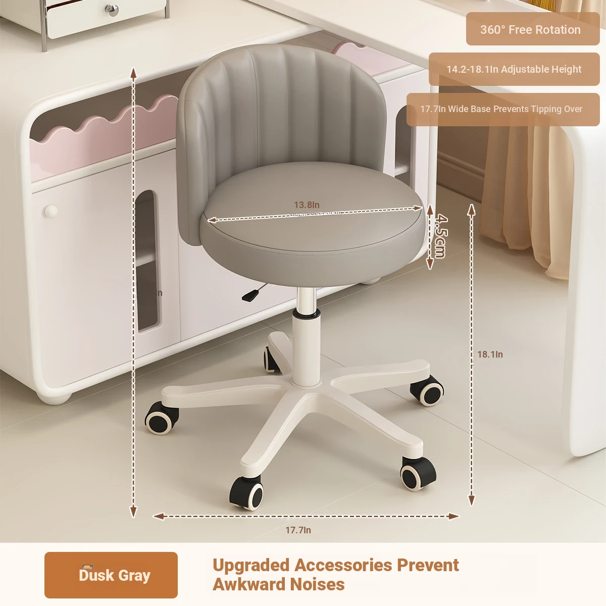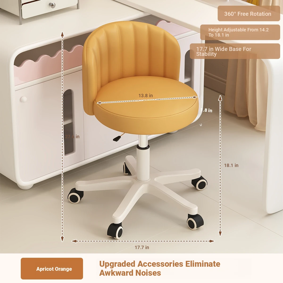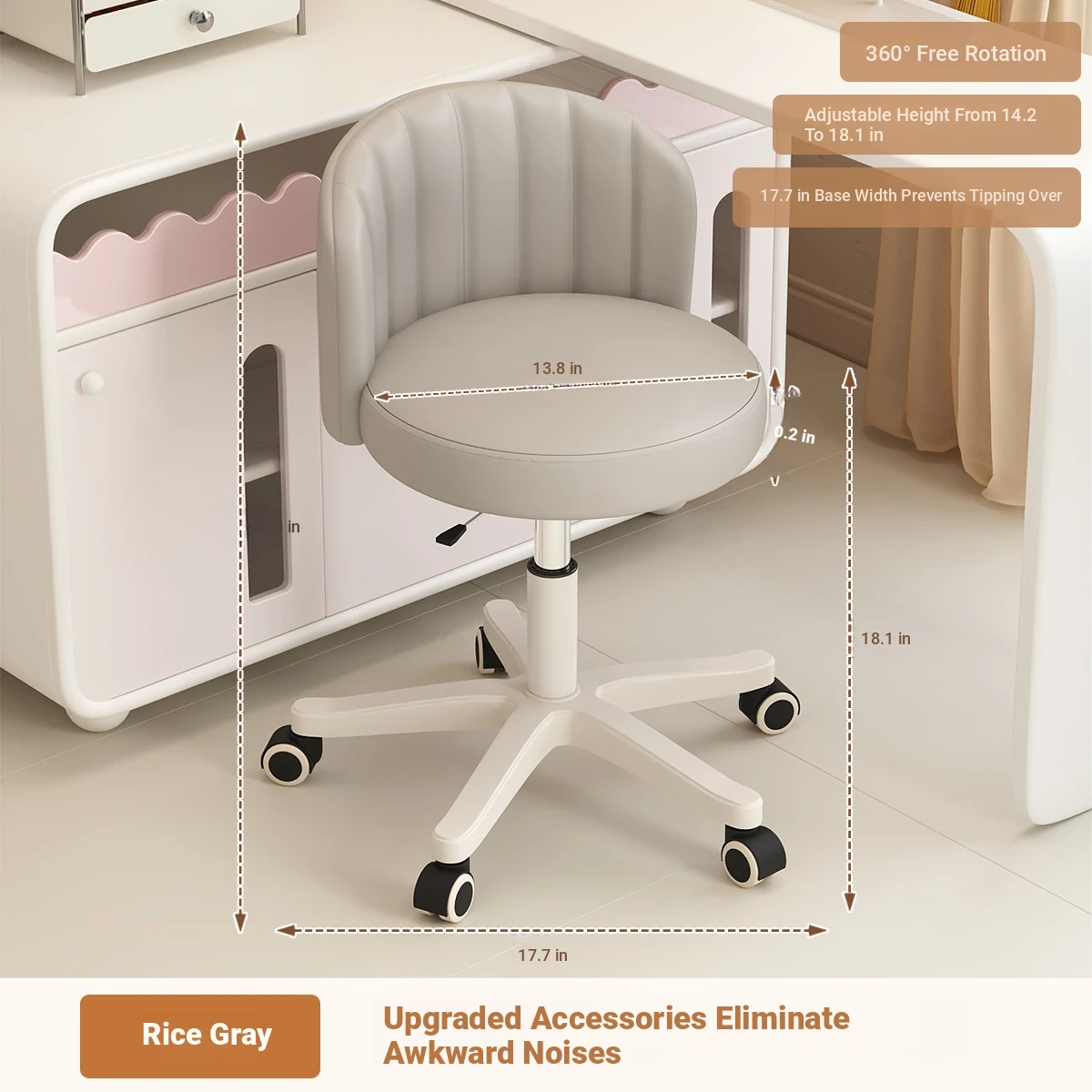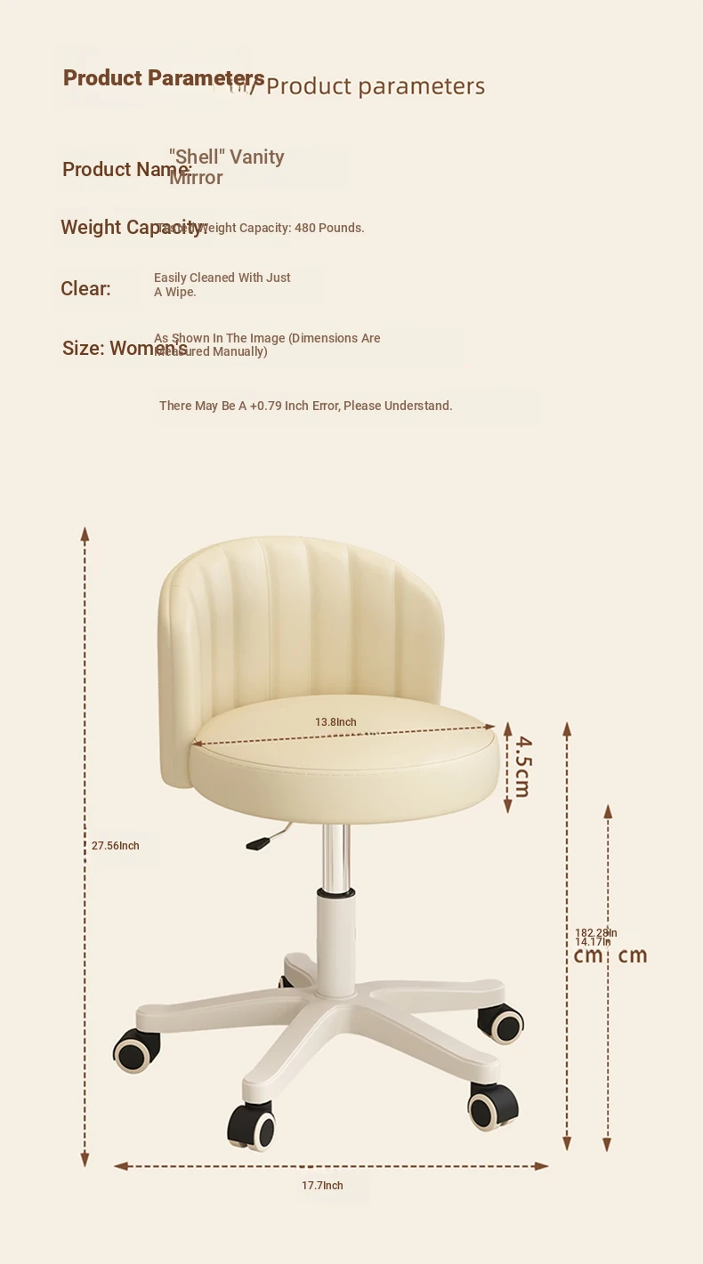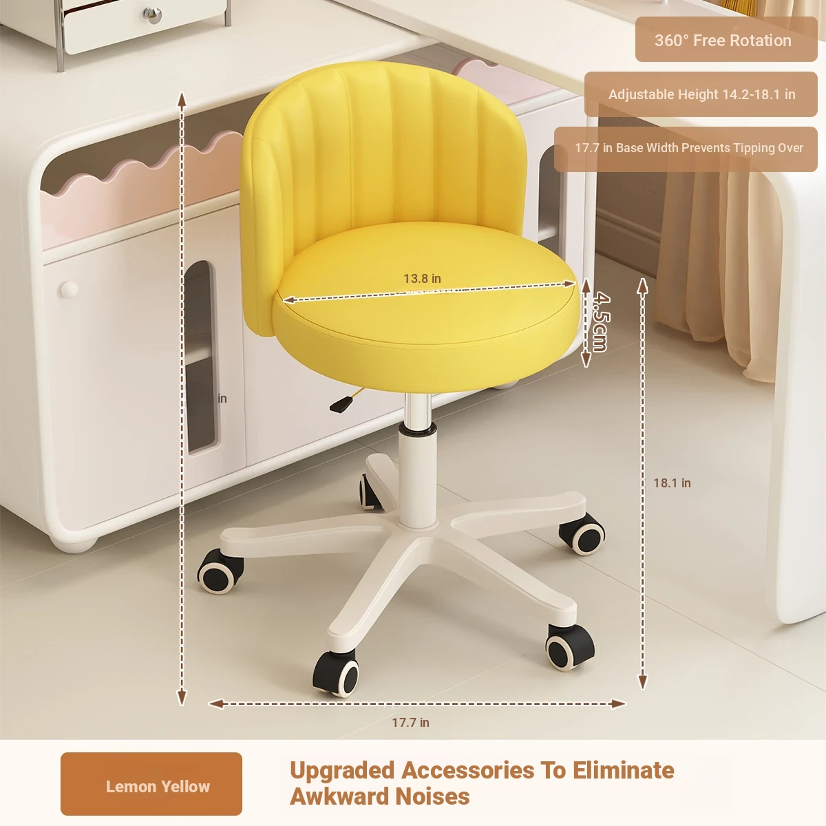 Creamy Makeup Chair for Girls - Stylish Bedroom Vanity Stool with Adjustable Backrest, Height and Swivel Wheels, Perfect for Beauty and Nail Art!