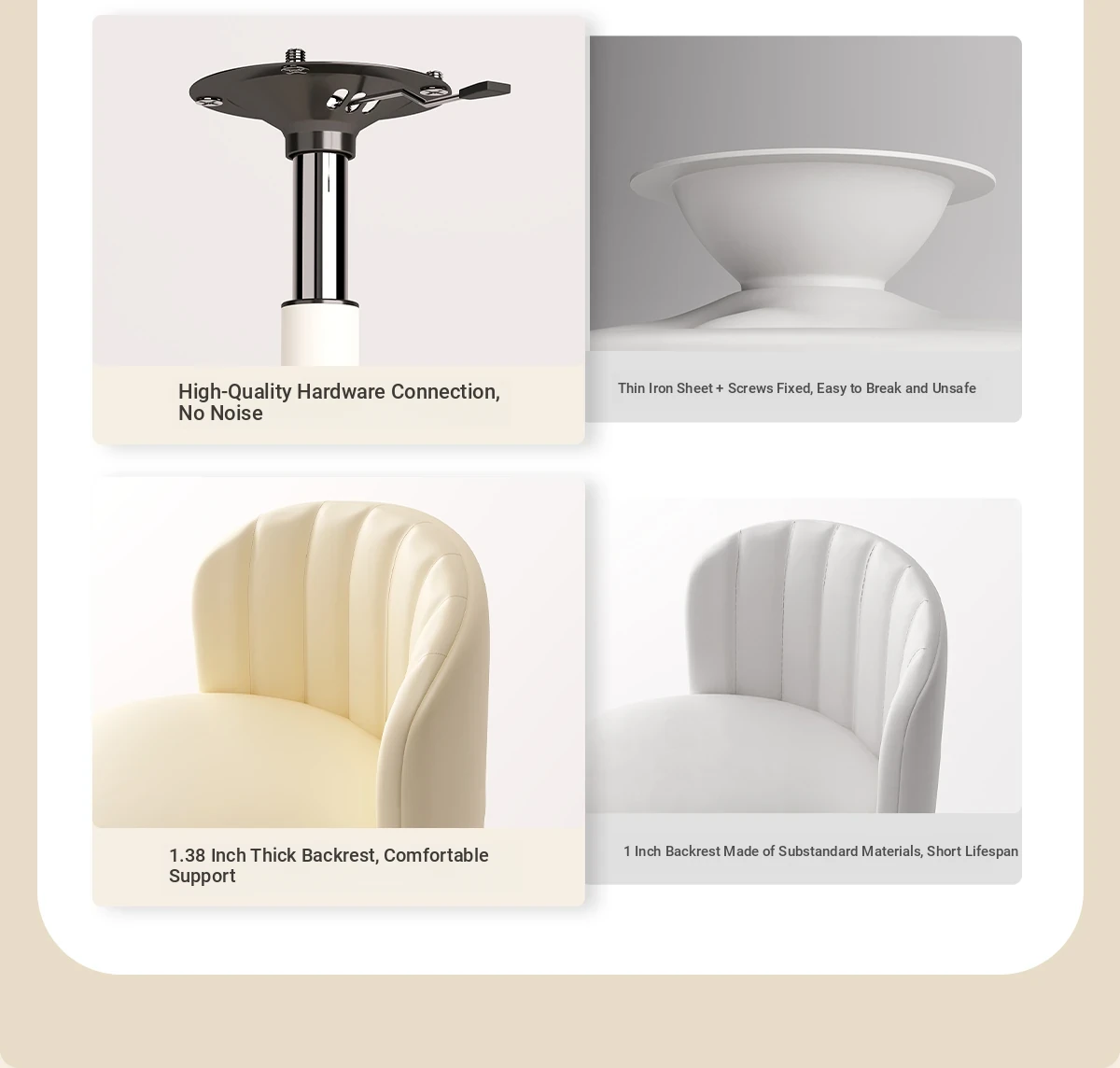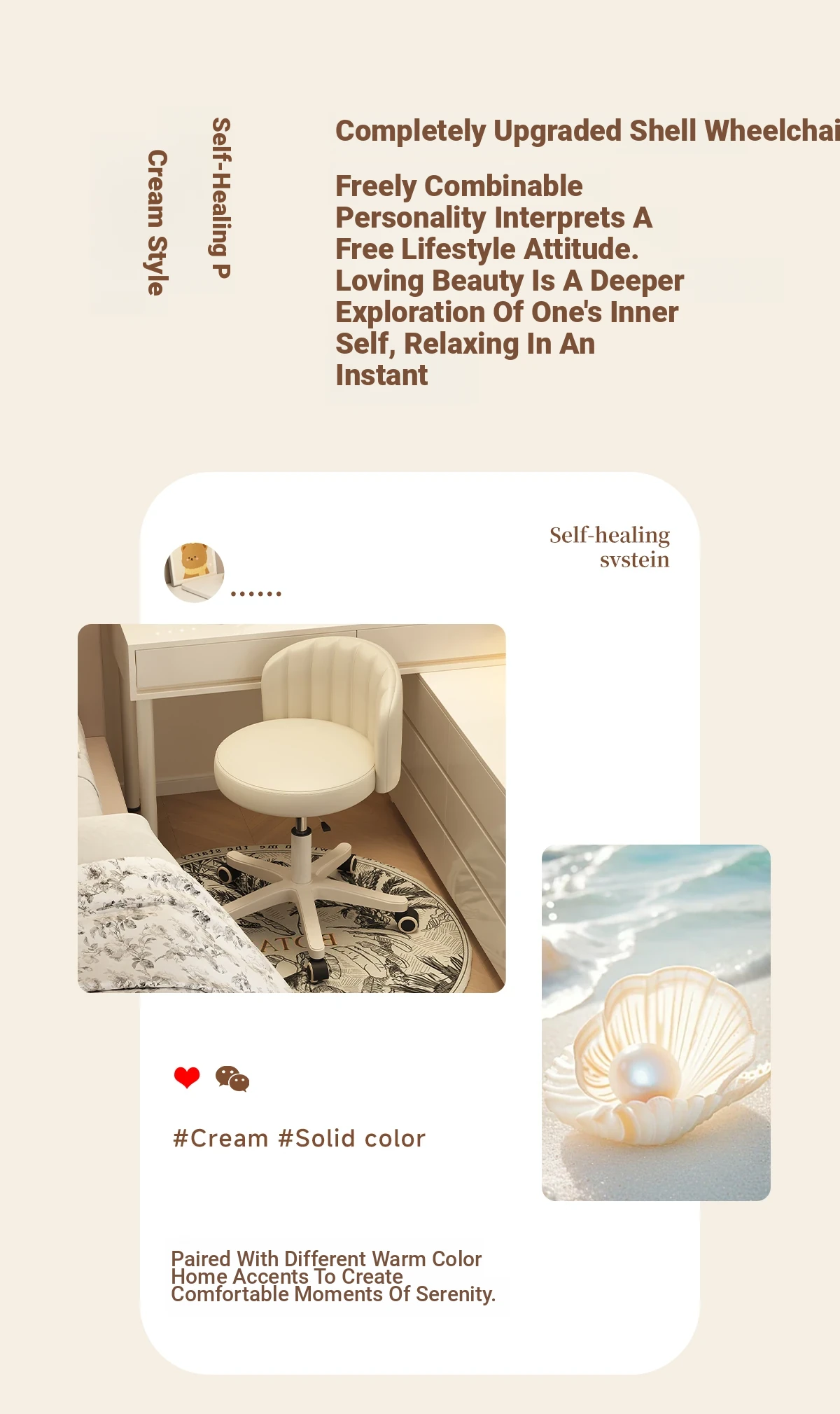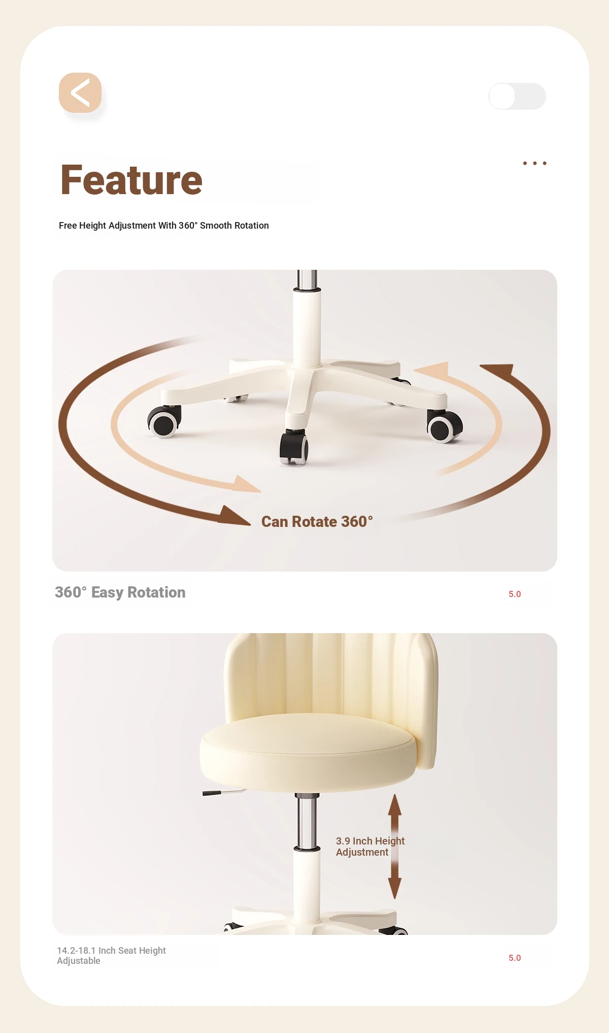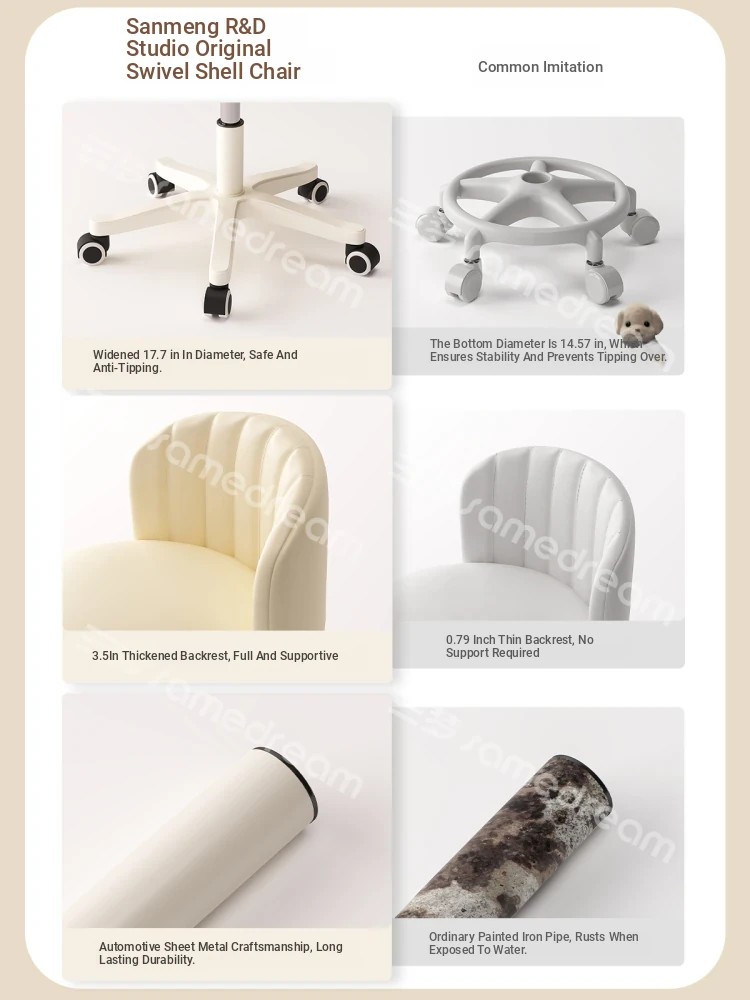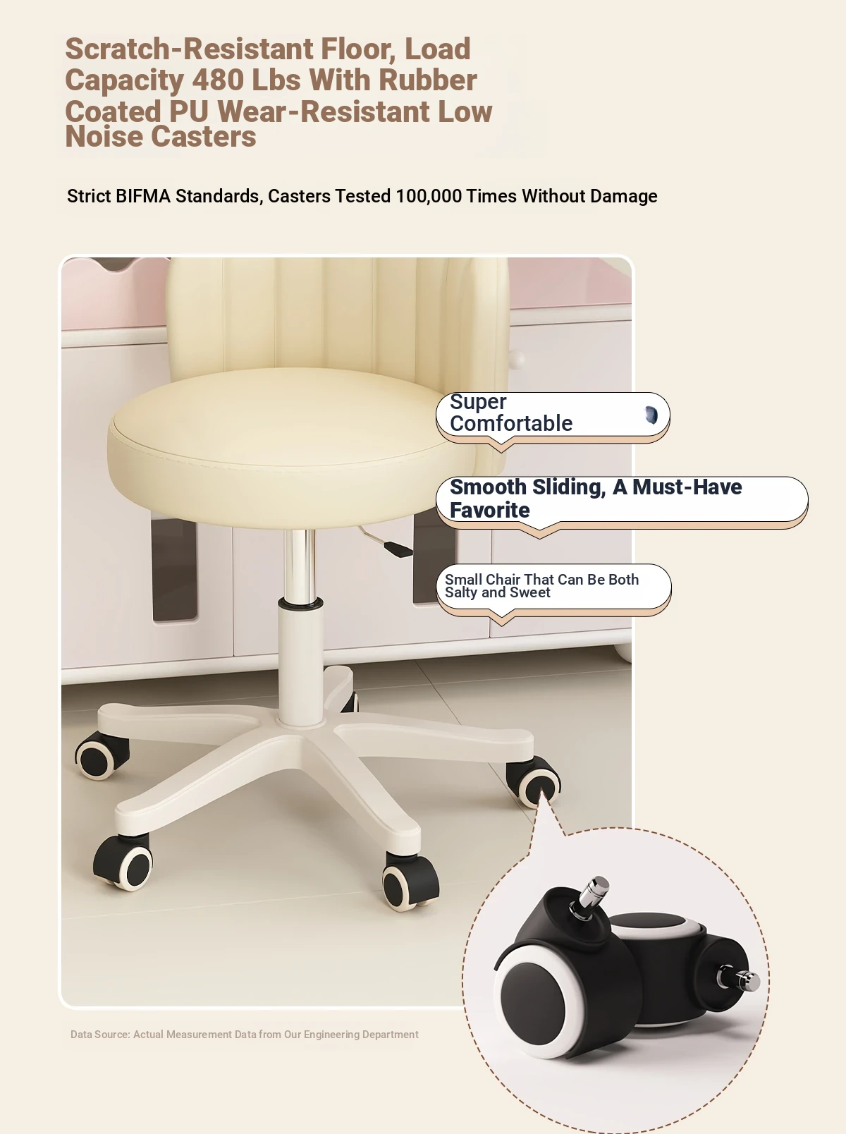 Creamy Makeup Chair for Girls - Stylish Bedroom Vanity Stool with Adjustable Backrest, Height and Swivel Wheels, Perfect for Beauty and Nail Art!