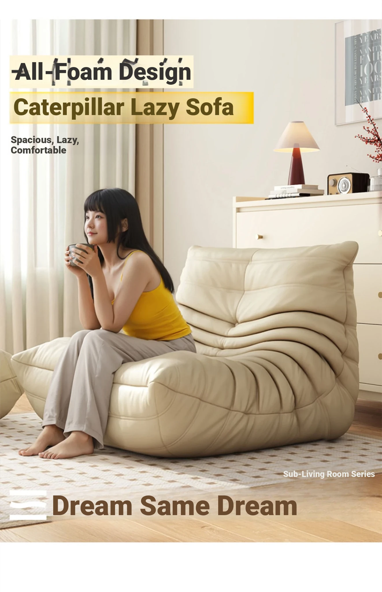 Dreamy Caterpillar Sofa - Versatile Lazy Chair for Relaxation, Lounging, and Sleeping. Perfect for Single Use in Your Living Room or Balcony. Trendy Tatami Style for Ultimate Comfort!