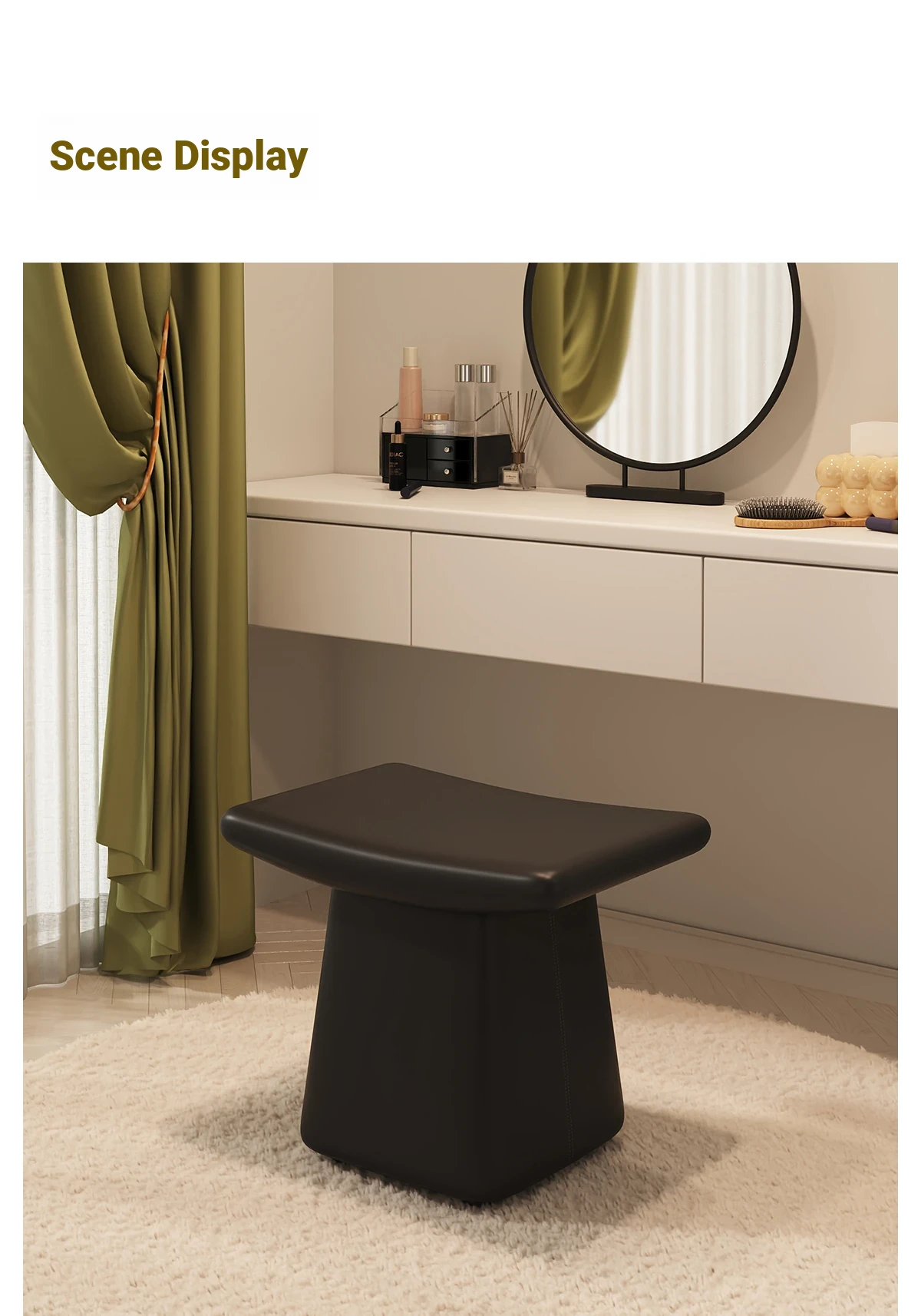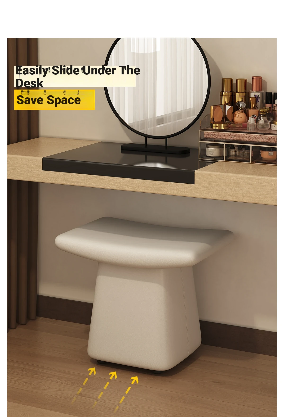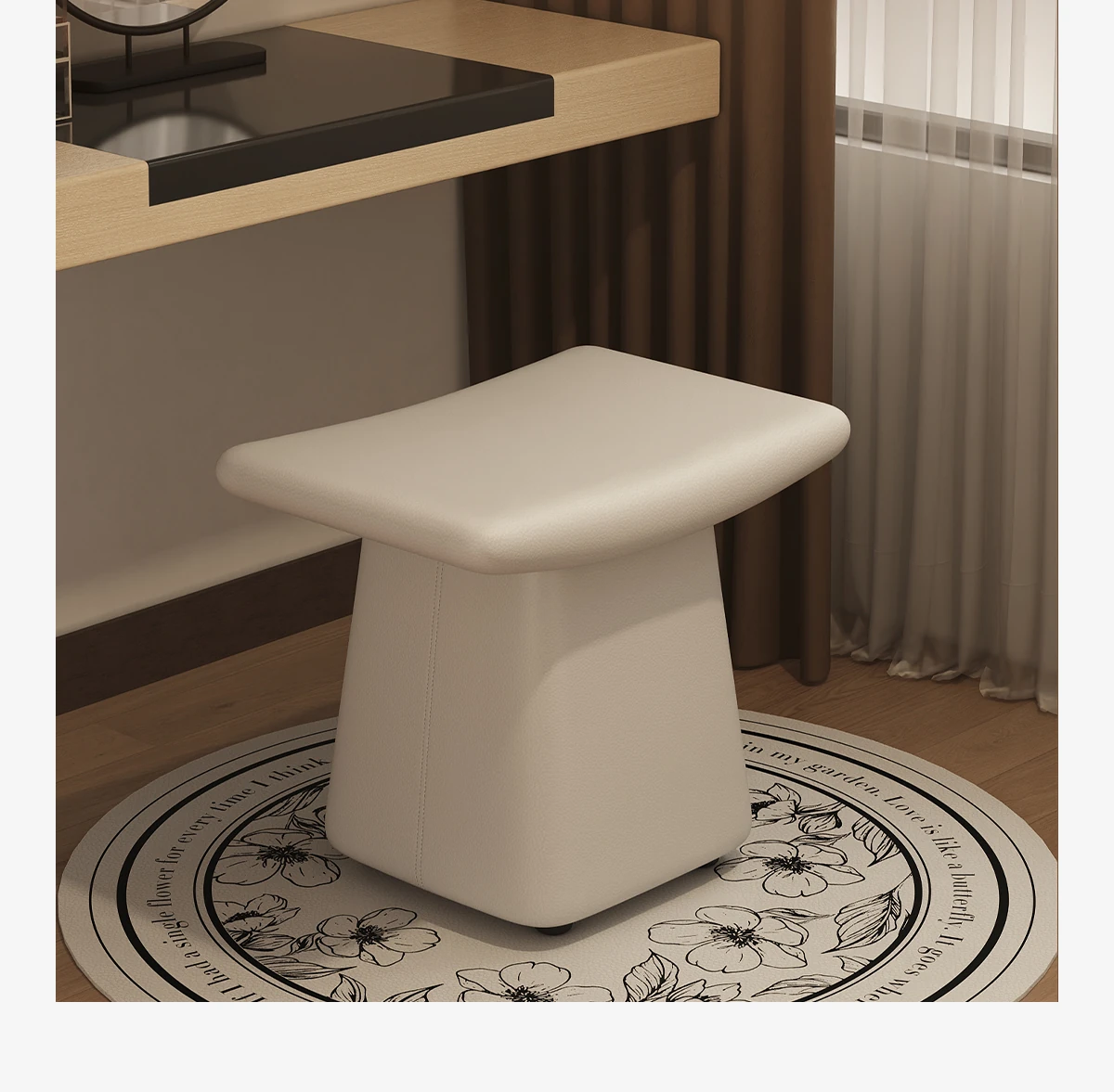 Dreamy Luxe Makeup Stool - Elegant Vanity Chair for Women’s Bedrooms, Perfect for Home Use and Grooming Spaces.