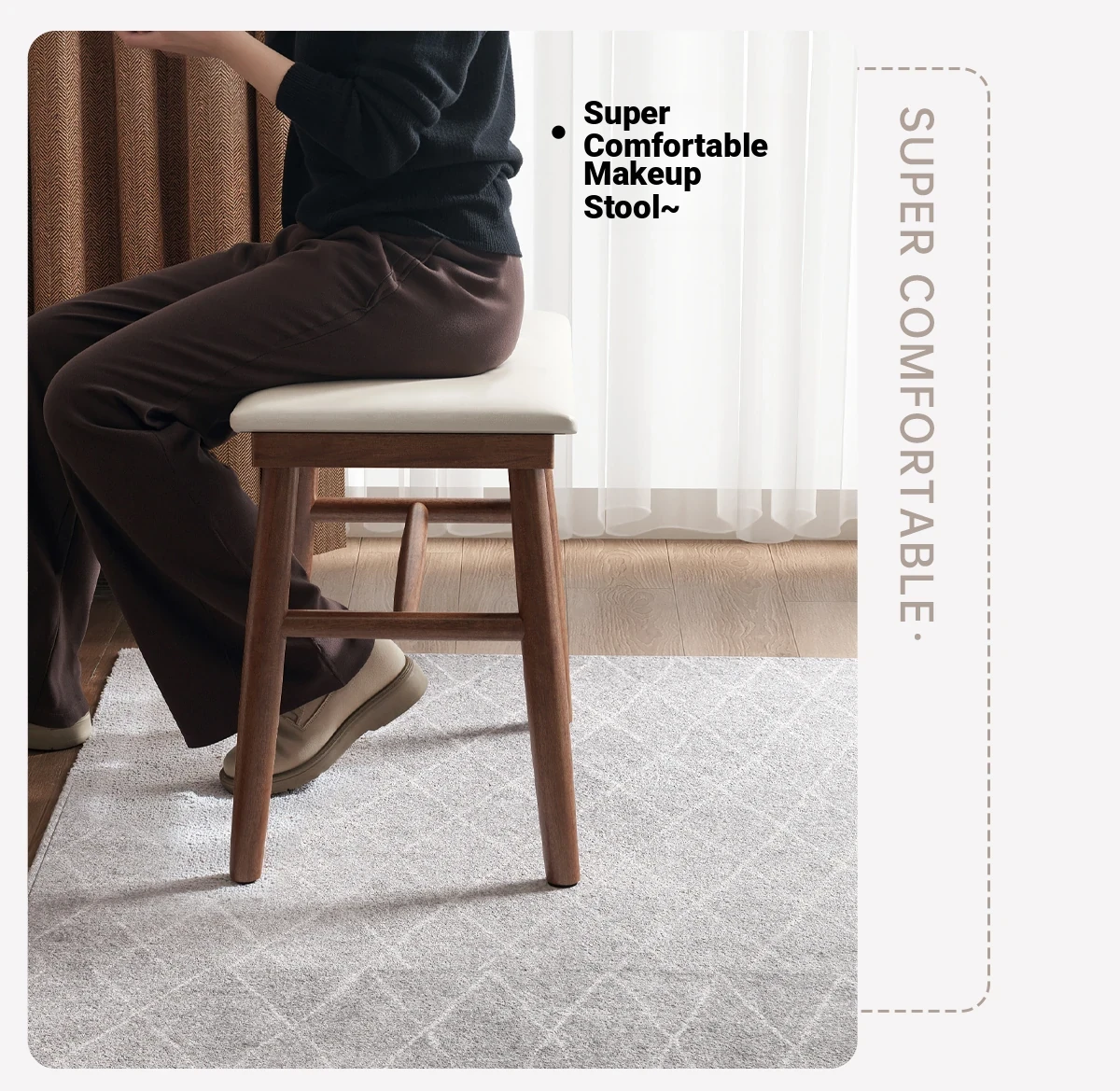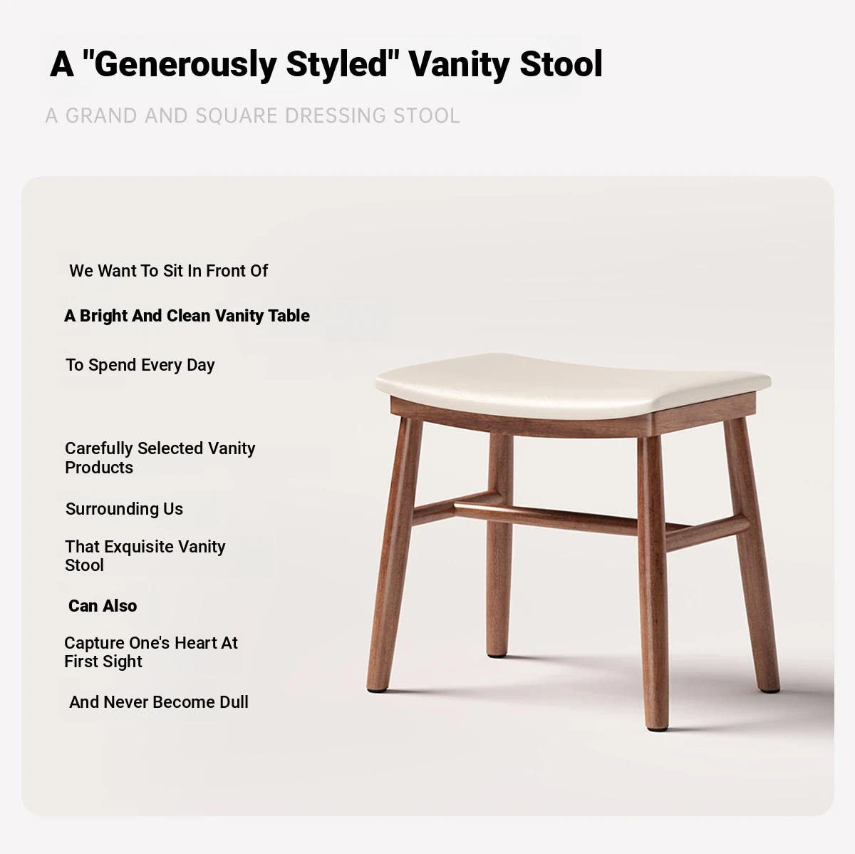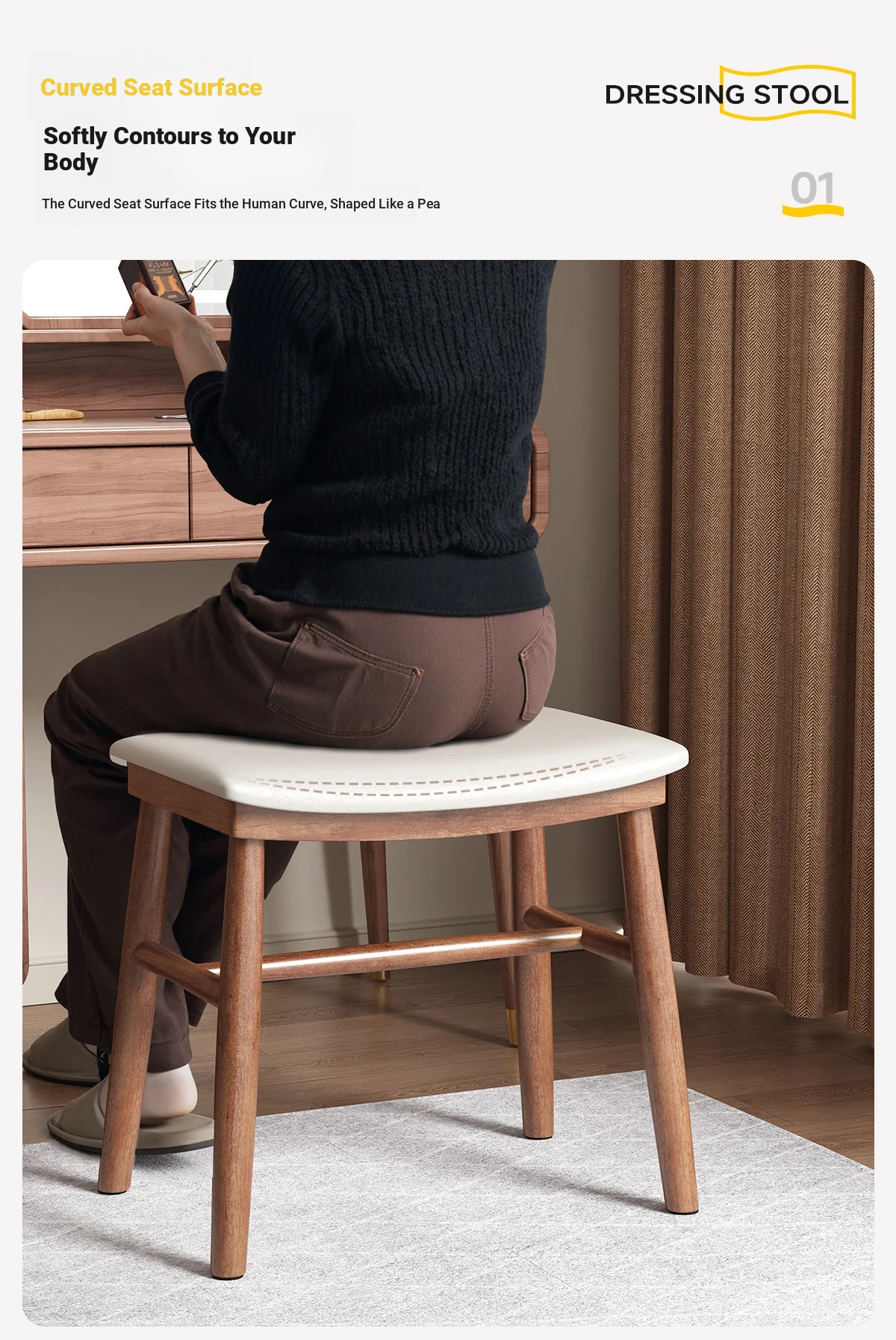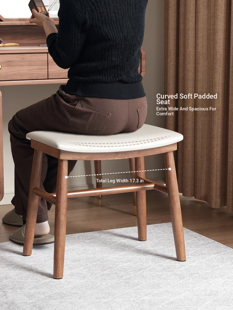 Dreamy Solid Wood Makeup Stool for Girls - Space-Saving Saddle Stool, Ideal for Dressing Tables, Soft Padded Makeup Chair