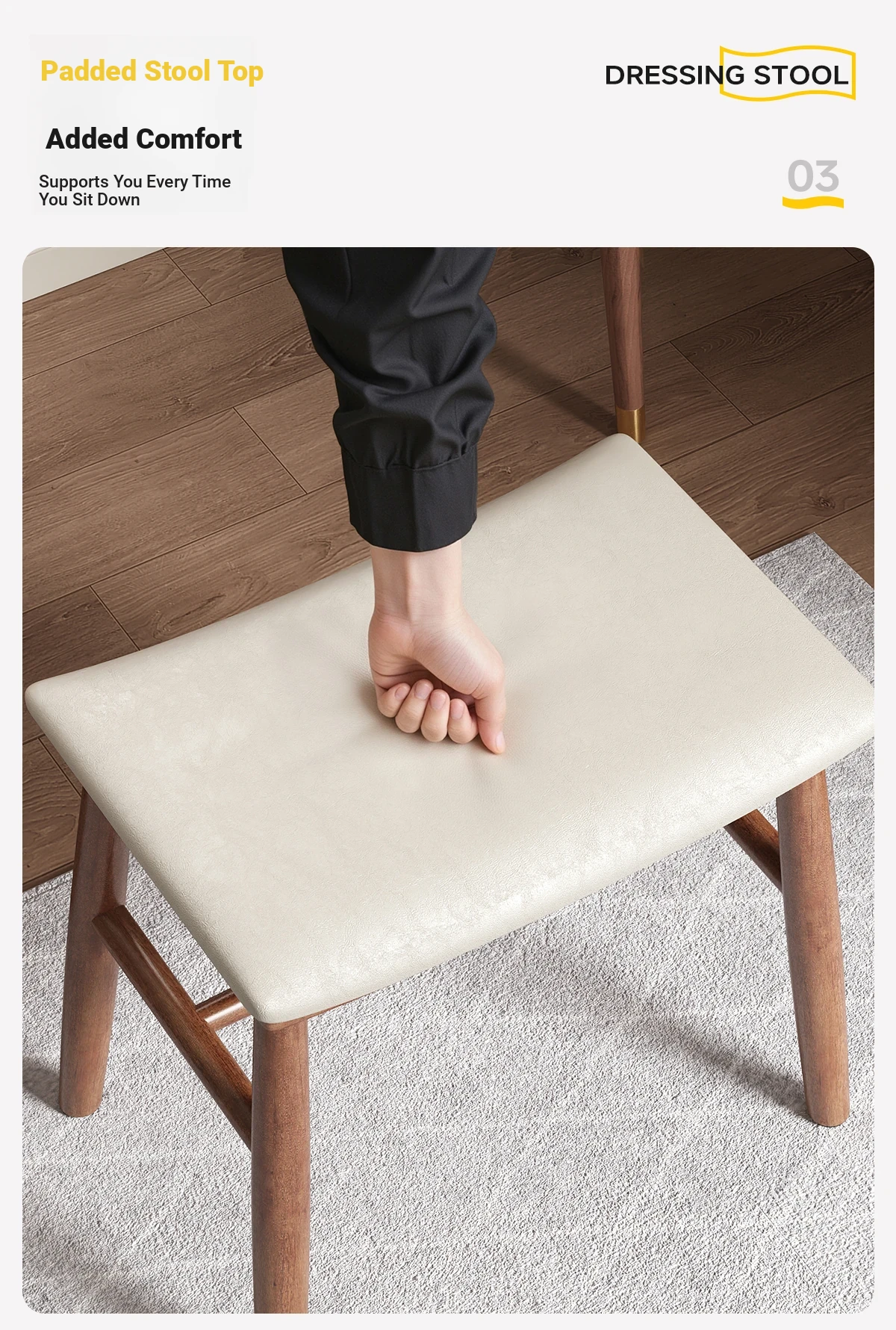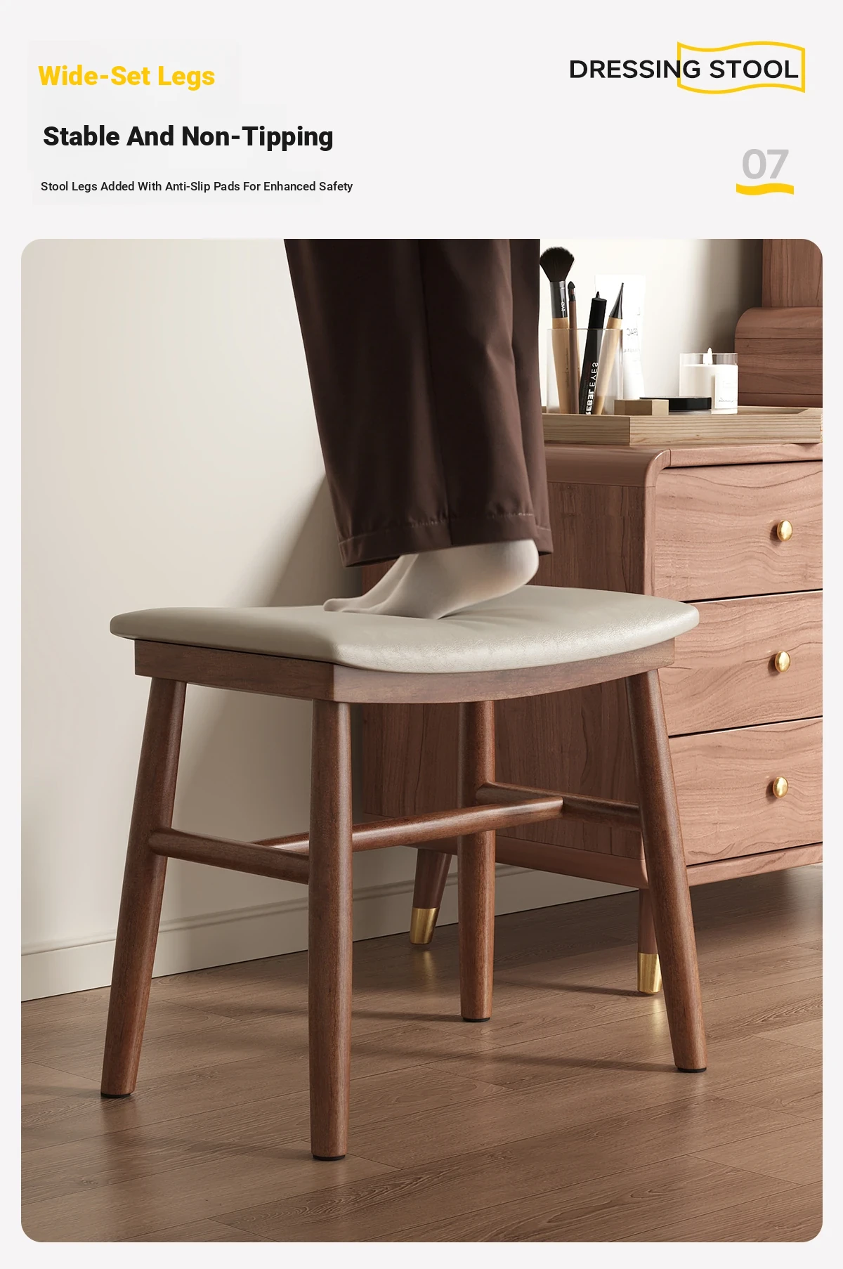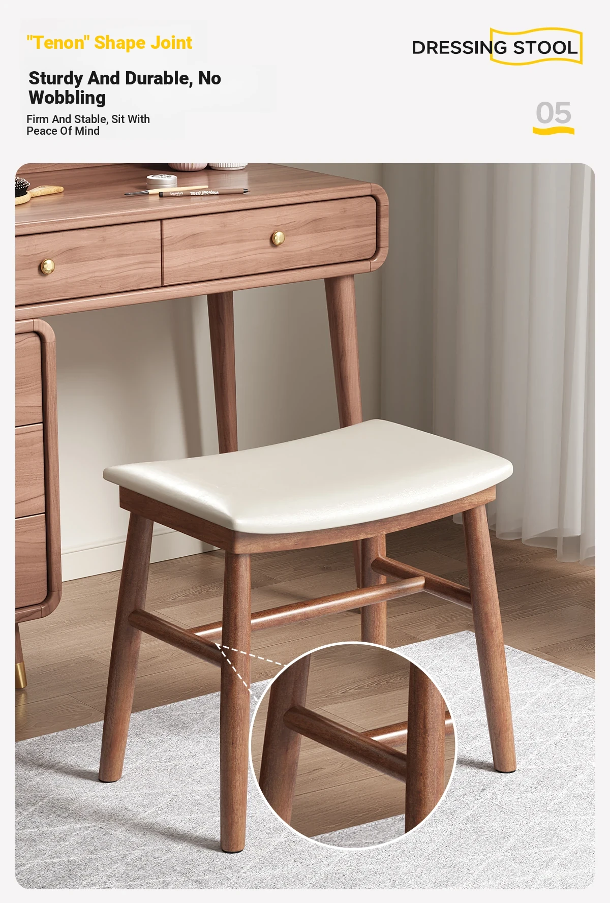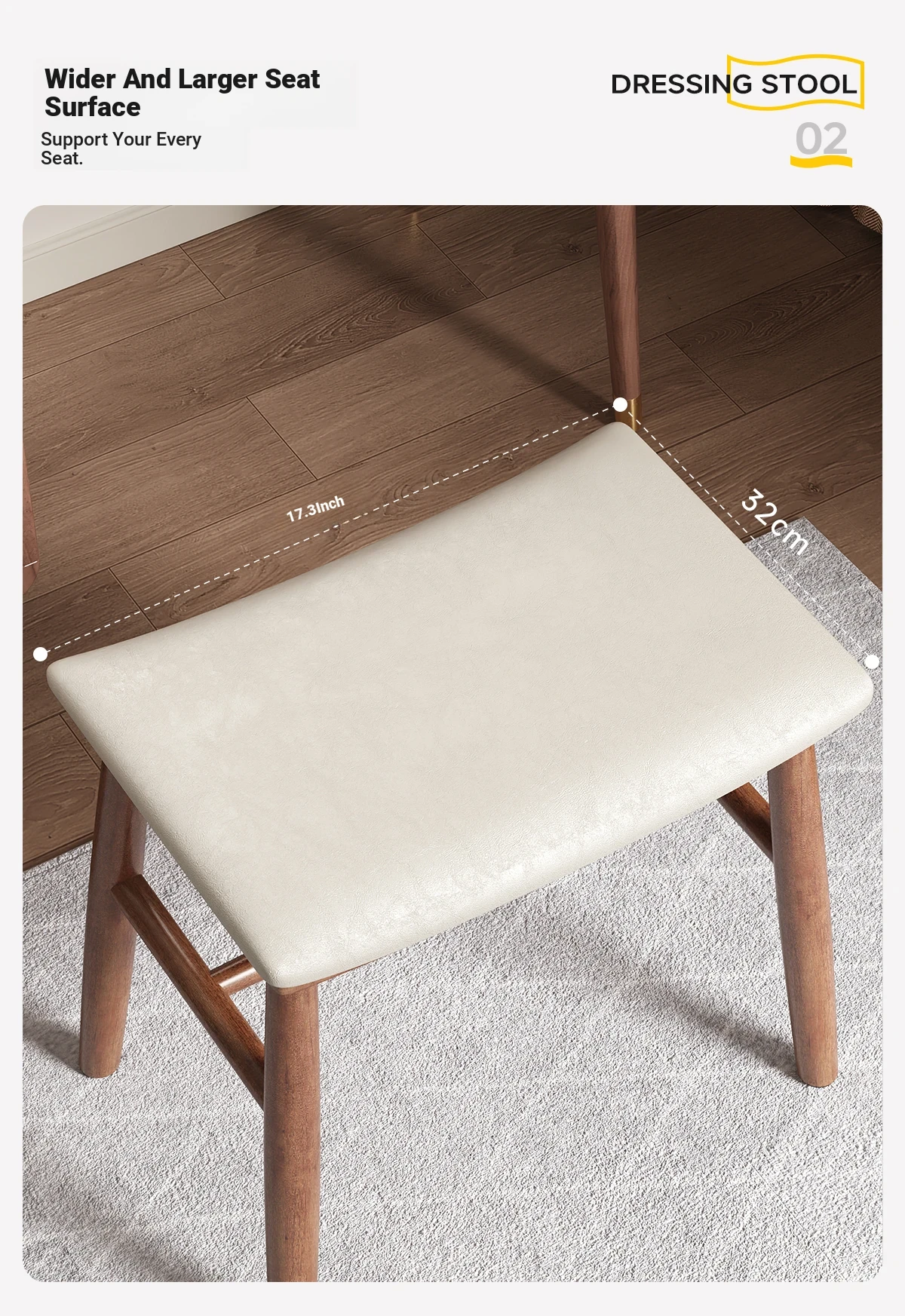 Dreamy Solid Wood Makeup Stool for Girls - Space-Saving Saddle Stool, Ideal for Dressing Tables, Soft Padded Makeup Chair