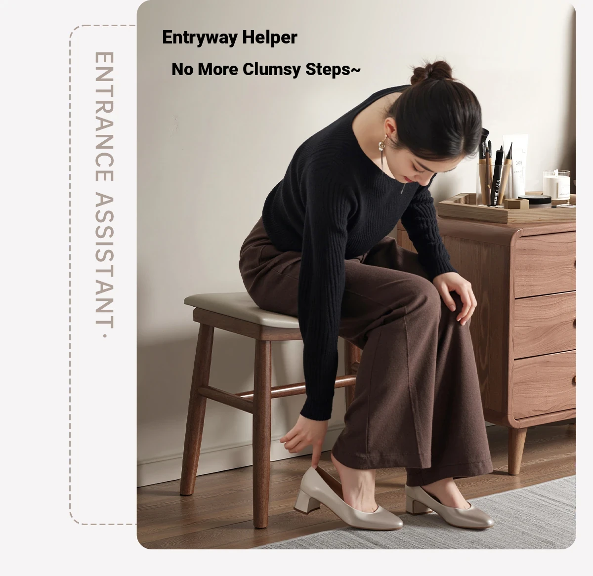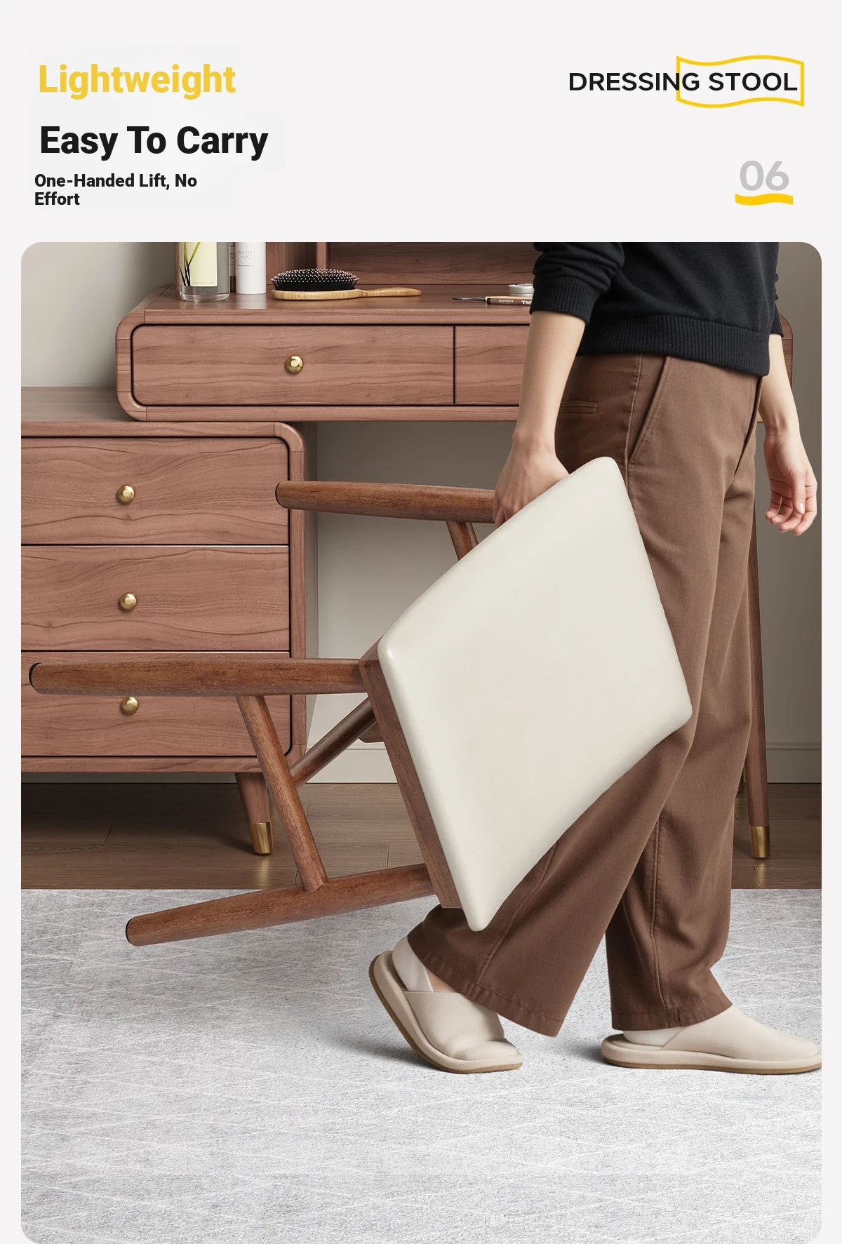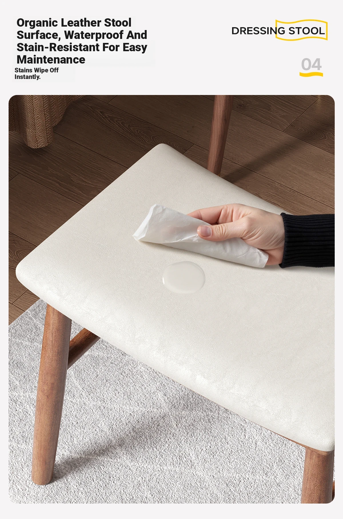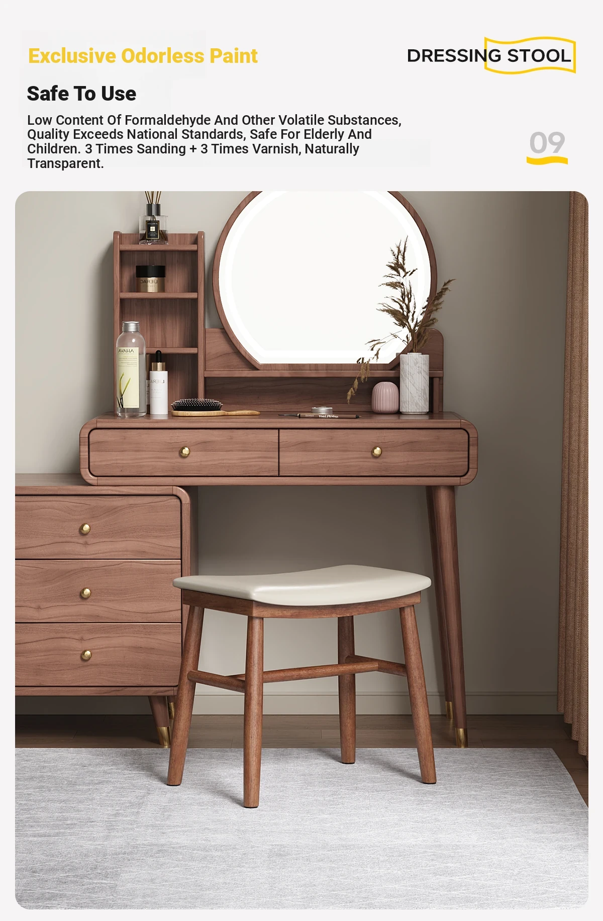 Dreamy Solid Wood Makeup Stool for Girls - Space-Saving Saddle Stool, Ideal for Dressing Tables, Soft Padded Makeup Chair