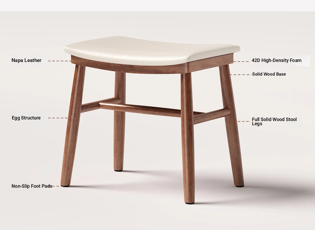 Large solid wood saddle stool [rice white stool surface + walnut stool leg] ready for shipment