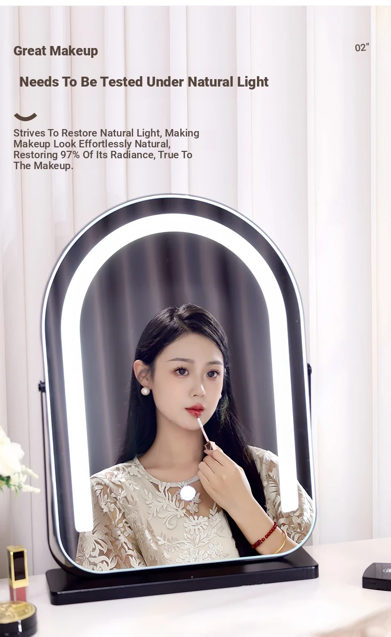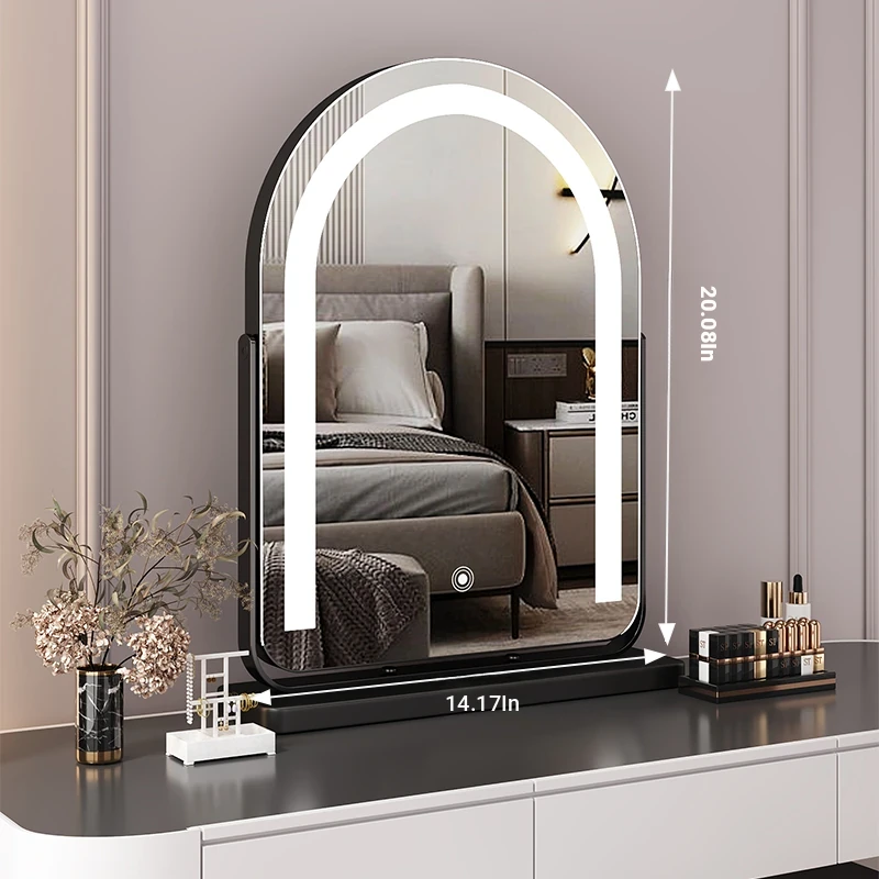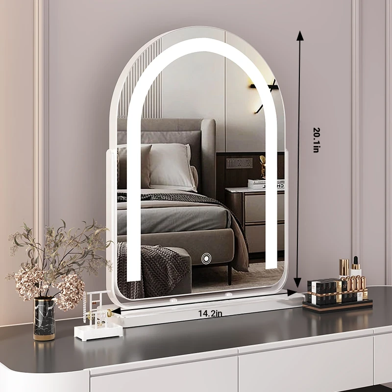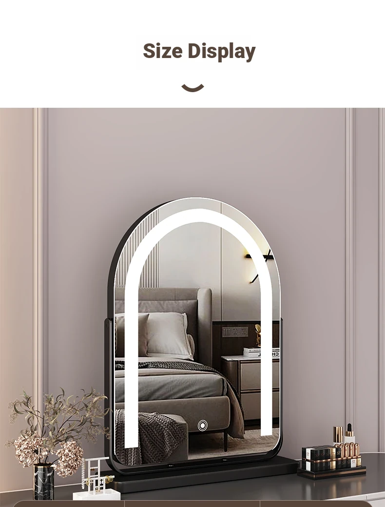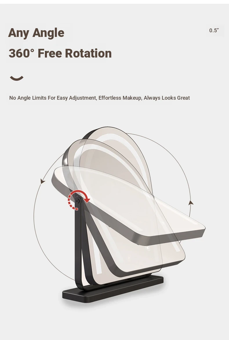 Elegant LED Vanity Mirror with Rotating Design - Smart Desktop Makeup Mirror for Luxurious Grooming in Your Master Bedroom