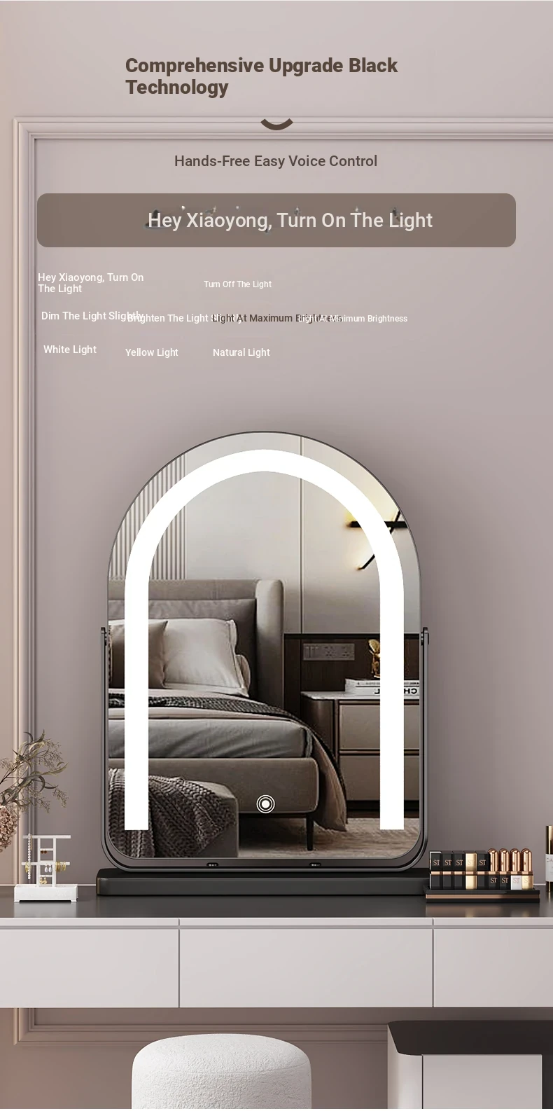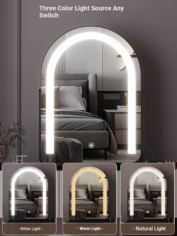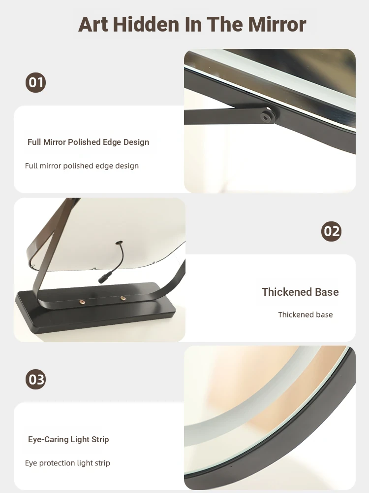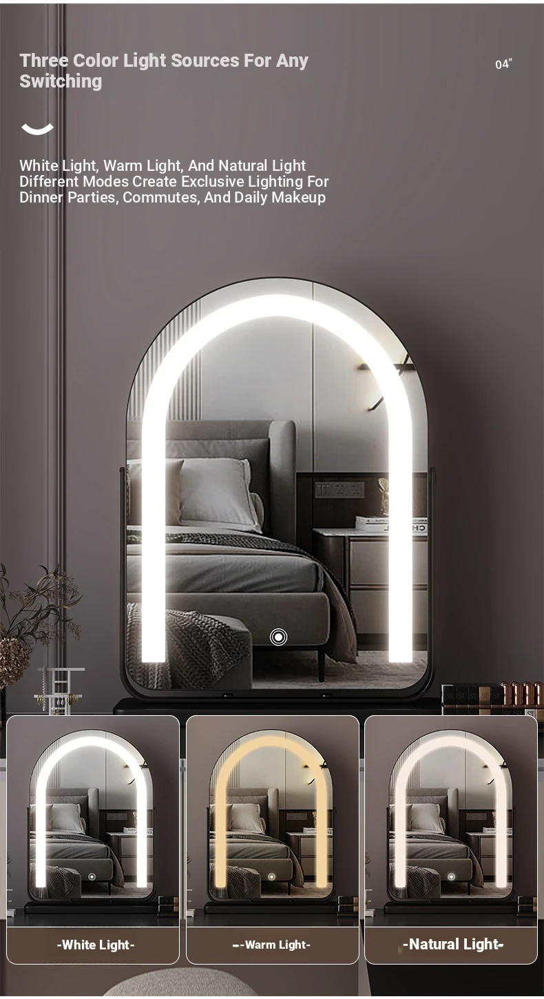 Elegant LED Vanity Mirror with Rotating Design - Smart Desktop Makeup Mirror for Luxurious Grooming in Your Master Bedroom