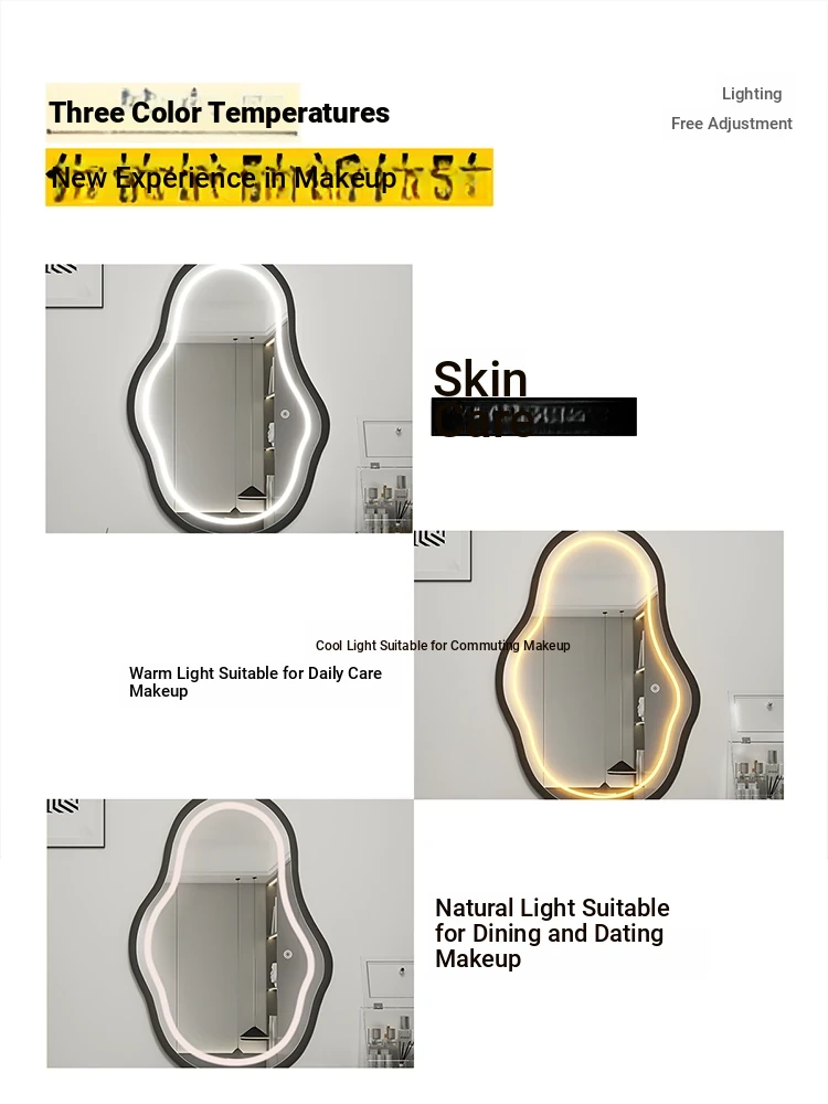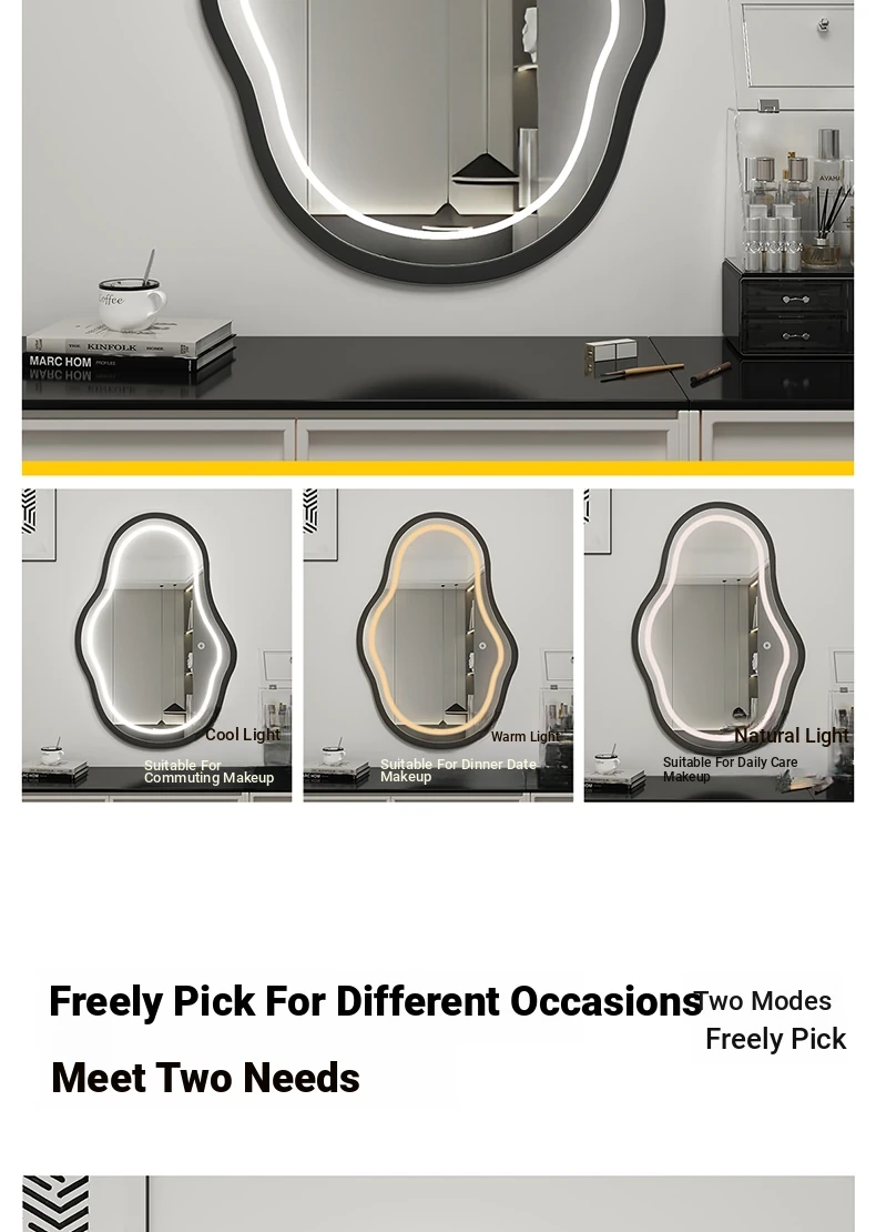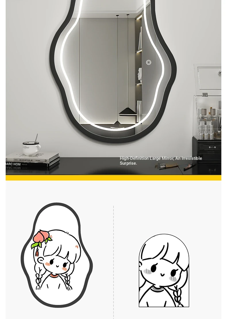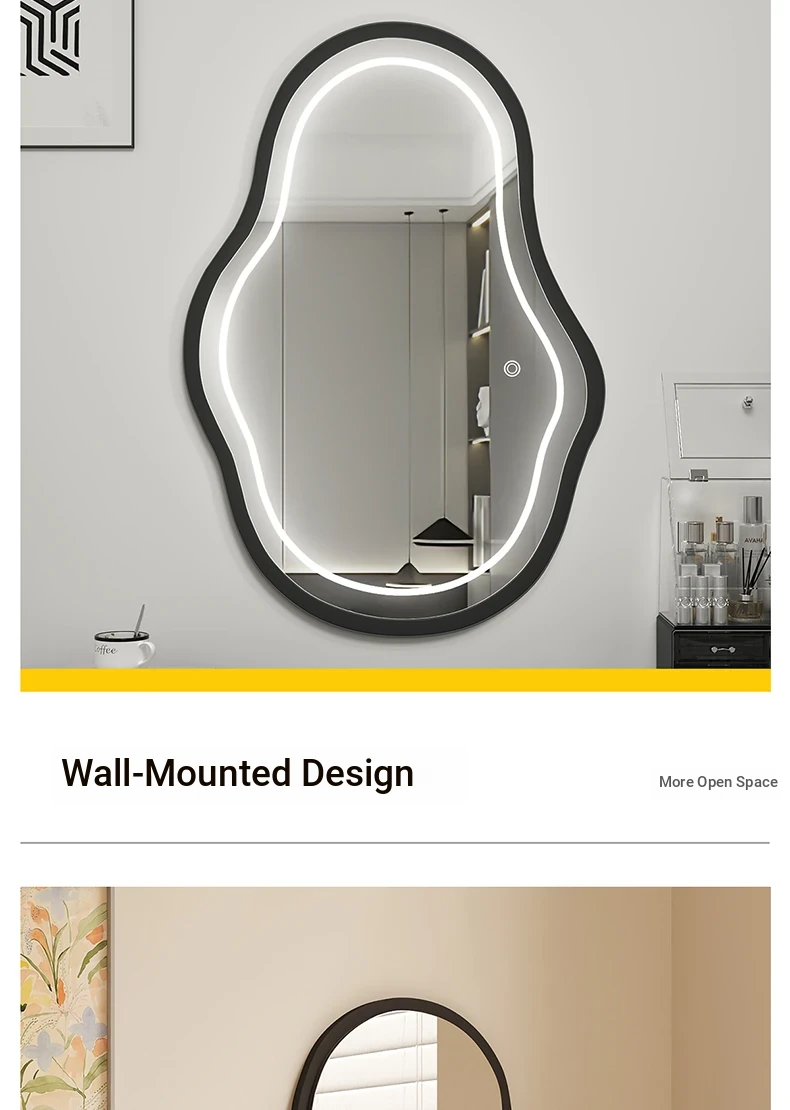 Elegant Luxury Wall-Mounted Smart LED Makeup Mirror for Bedroom - Irregular Shaped Vanity Mirror with Lights, Perfect for a Glamorous Touch!