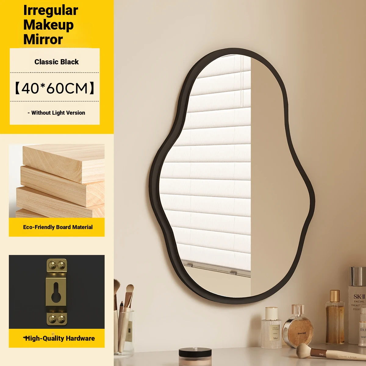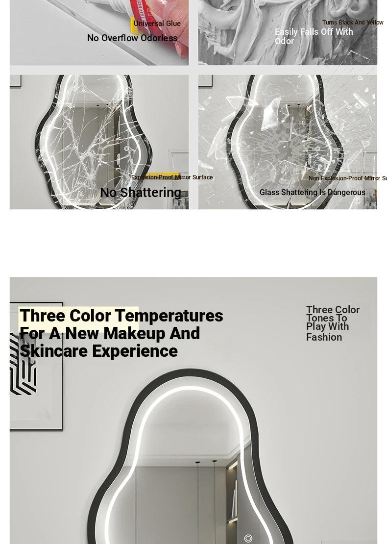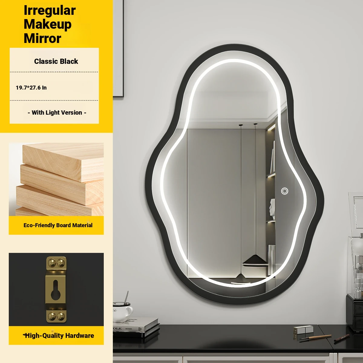 Elegant Luxury Wall-Mounted Smart LED Makeup Mirror for Bedroom - Irregular Shaped Vanity Mirror with Lights, Perfect for a Glamorous Touch!